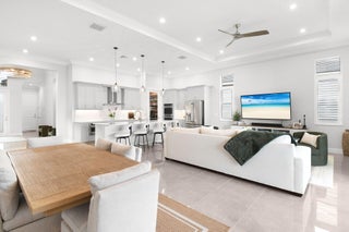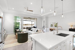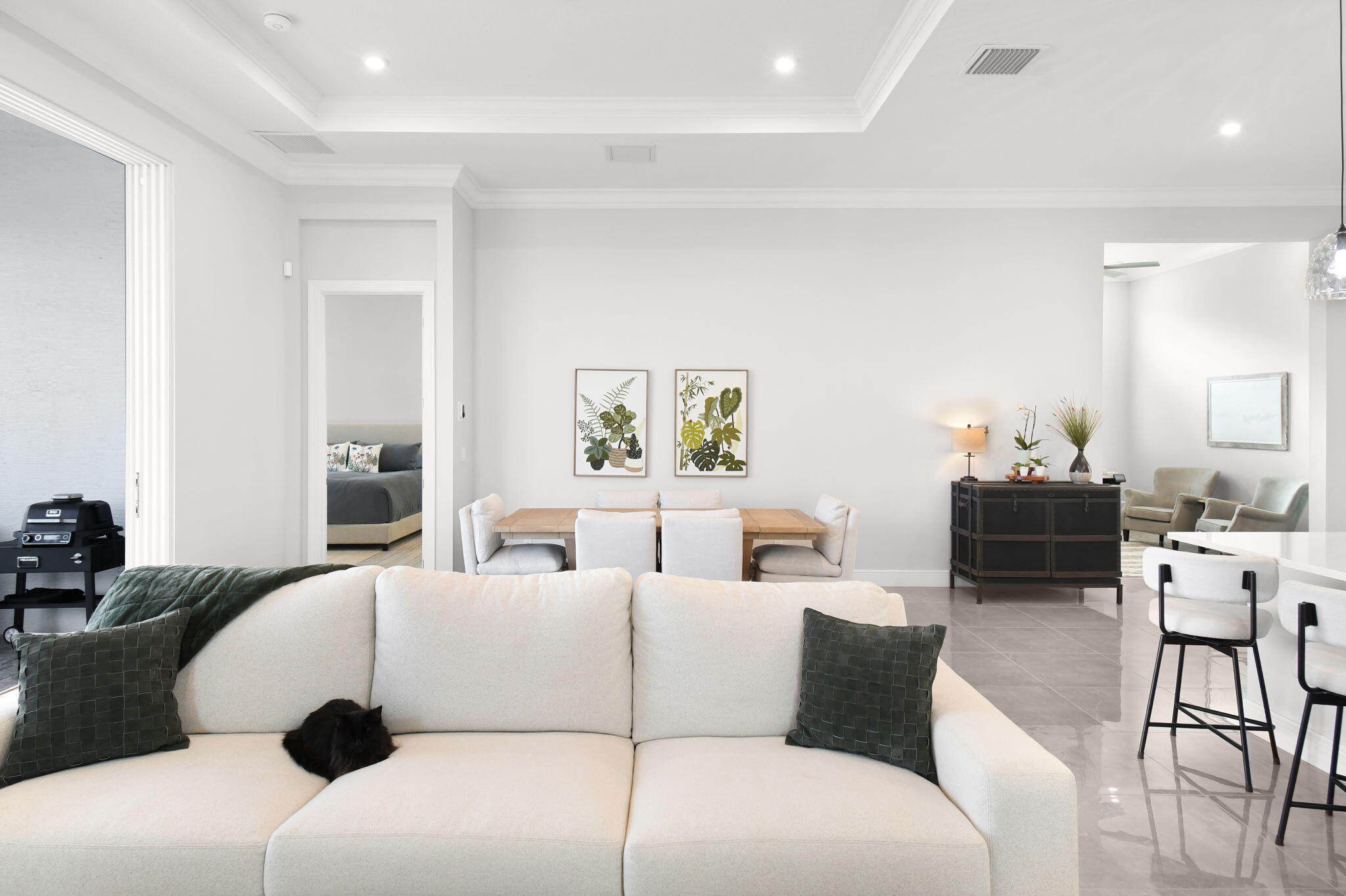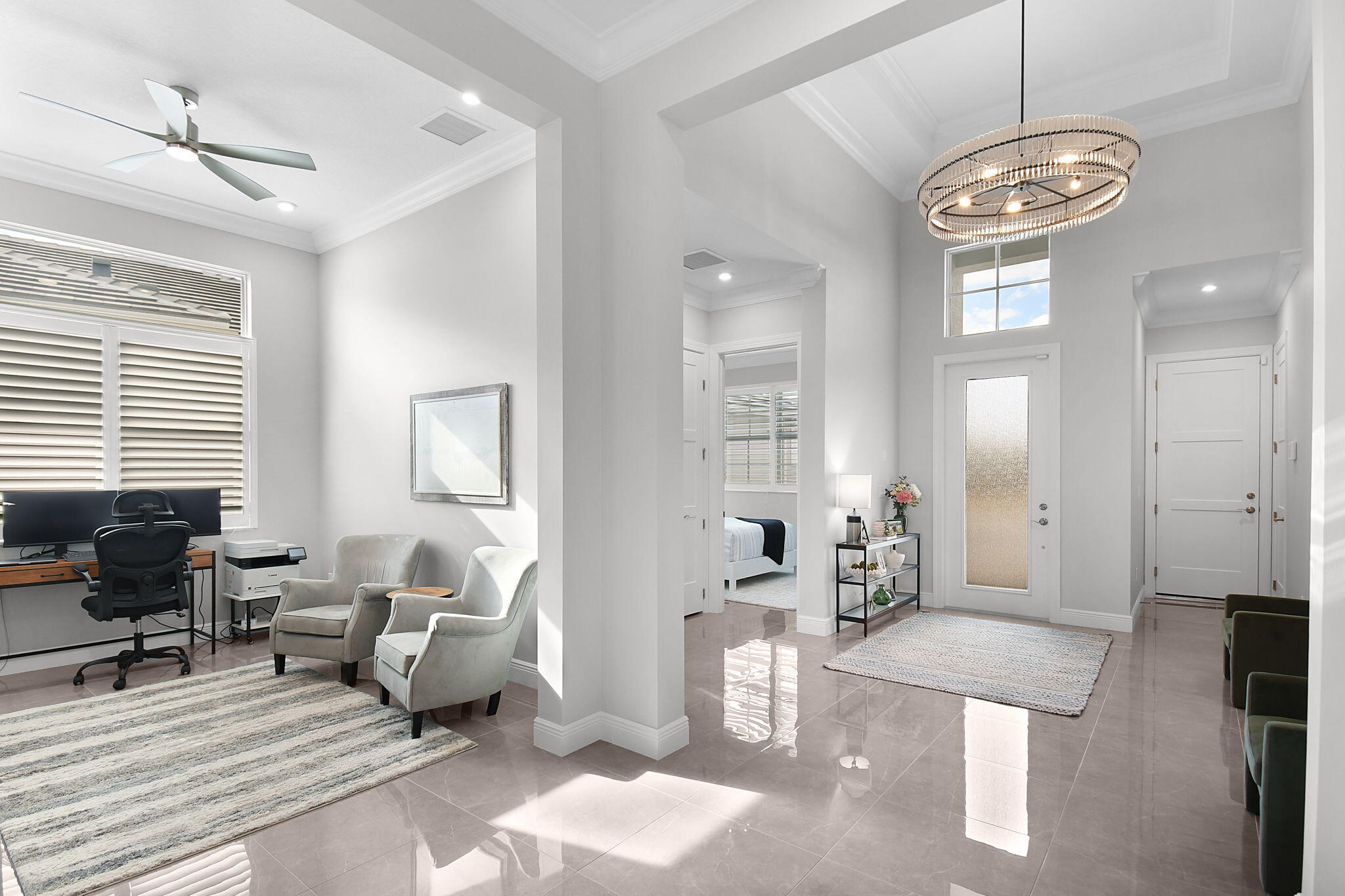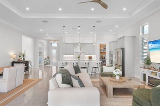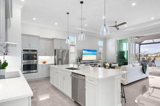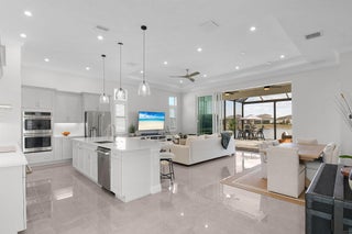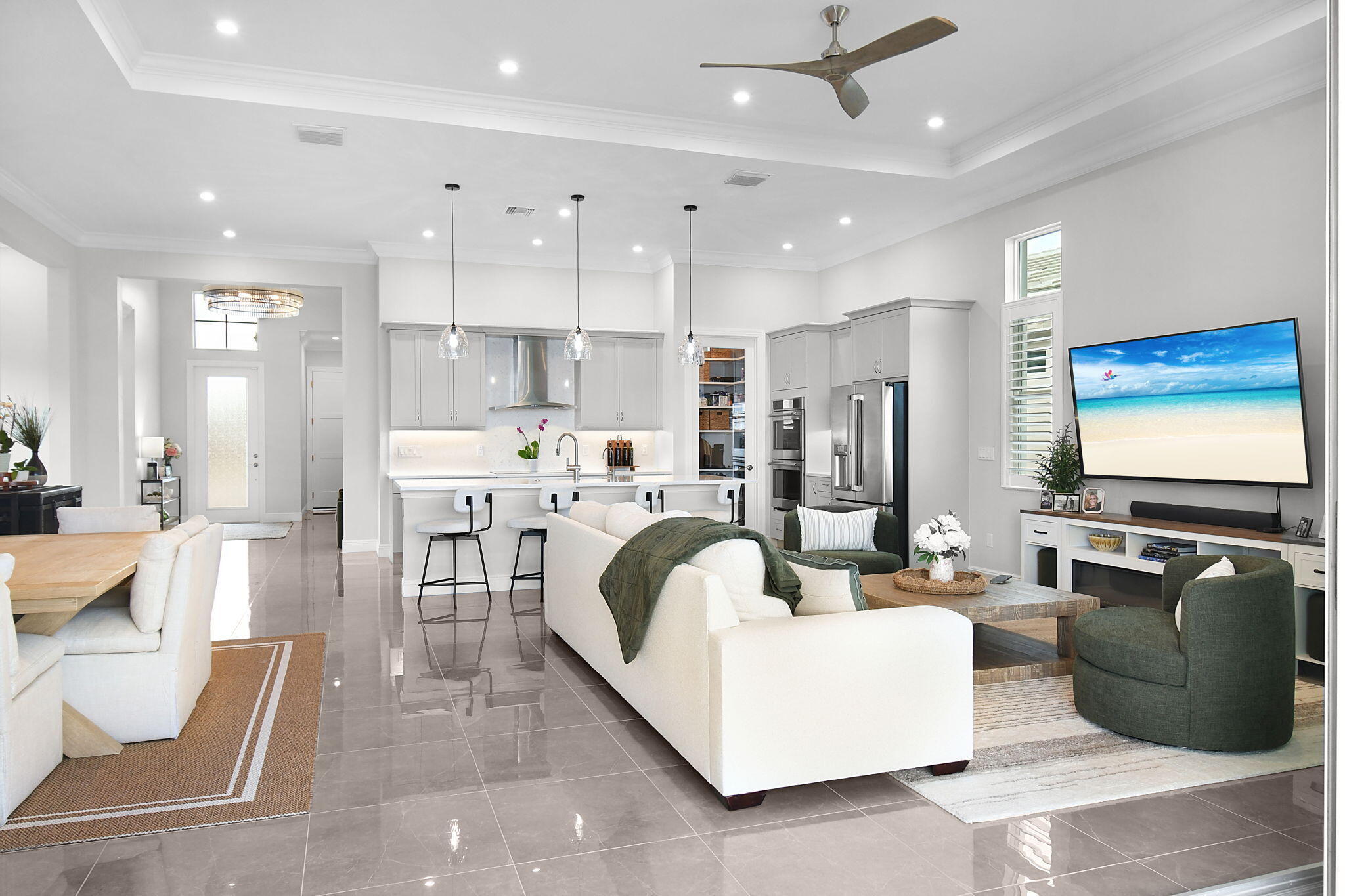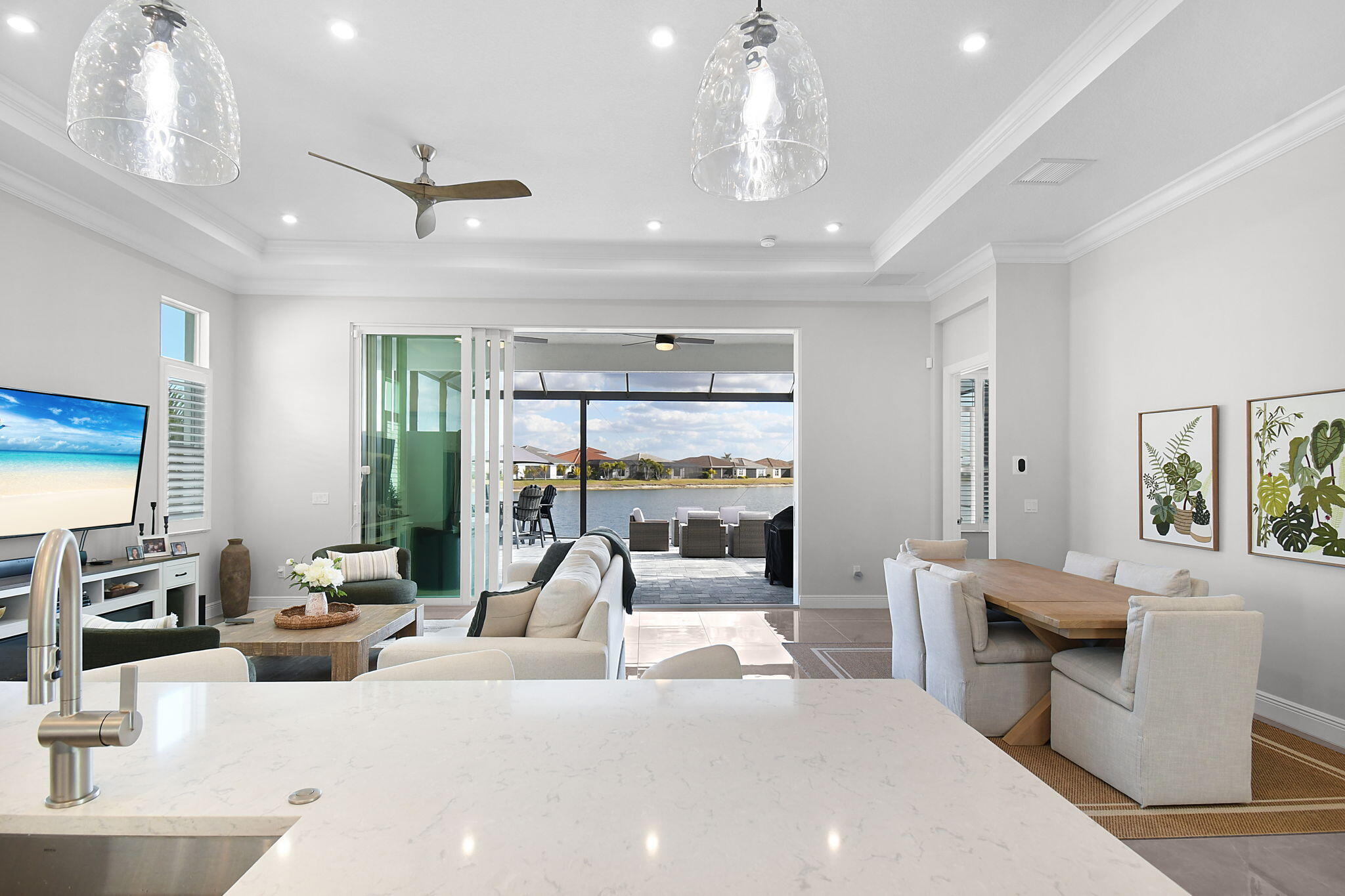 Experience the pinnacle of resort-style living in PGA Village Verano with this highly upgraded 2024 Kolter-built lakefront residence set on a premium wide-water homesite with ideal southern exposure. Designed for the most discerning buyer, this 3-bedroom, 3-bath home with a 3-car garage showcases over $200,000 in builder and post-closing upgrades, offering a move-in-ready luxury lifestyle without the wait to build.From the moment you enter, the home impresses with 24x24 high-gloss tile flooring throughout, upgraded solid-core interior doors, custom moulding, and a stunning Therma-Tru privacy glass entry.The open-concept design is enhanced by oversized sliding glass doors that seamlessly connect indoor and outdoor living while framing breathtaking long lake views and all-day southern light. The chef's kitchen was thoughtfully upgraded with GE Café appliances including a 36" induction cooktop, double ovens, chimney hood, and expanded cabinetry, complemented by full-height backsplash, glass pantry door, designer lighting, and extensive storage, ideal for entertaining and everyday luxury. Spa-inspired baths feature floor-to-ceiling tile, frameless showers, upgraded vanities, and extended mirrors, creating a true retreat feel in every space. Step outside to a dramatically expanded 20x40 screened lanai with pavers overlooking wide water, perfect for sunrise coffee, evening gatherings, and enjoying Florida's indoor-outdoor lifestyle year-round. A premium hot tub, additional exterior lighting, and full-home gutters further enhance comfort and functionality. Additional highlights include: Custom closet systems throughout Plantation shutters in all rooms including garage Designer lighting and ceiling fans Whole-home paint upgrades Reverse osmosis water system Insulated garage with mini-split A/C Tesla charger service + additional dedicated electrical upgrades Added attic flooring and overhead storage Located in PGA Village Verano, residents enjoy a resort-caliber lifestyle with a spectacular clubhouse campus, fitness center, indoor and outdoor pools, tennis, pickleball, social clubs, dining (PGA Village), and year-round activities, all within a gated, beautifully maintained community. This is a rare opportunity to own a nearly new, extensively upgraded waterfront home on one of Verano's most desirable lots, where luxury, lifestyle, and location come together seamlessly.
