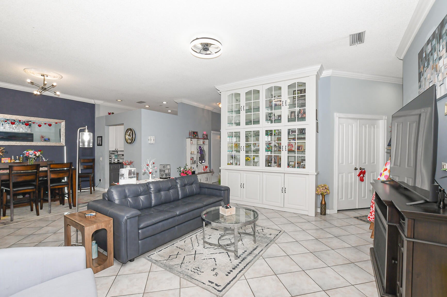 Welcome home to this beautiful 3 bedroom, 2 bath, 2 car garage pool home. This St. Lucie West residence is located in the highly desirable Lakes community that is tucked away on a peaceful mini cul de sac. The perfect blend of comfort and convenience with a welcoming community atmosphere.Whether you're relaxing or entertaining, this is a great space with tons of options! The kitchen, dining and living area have a nice easy flow for every day use or entertaining. Ceramic tile and crown molding throughout. The large double sliders open to the sparkling pool oasis with a spacious porch area to enjoy the Florida weather! New roof installed 2021. Close to schools, shopping, I-95, golf, restaurants and the St. Lucie Mets!
