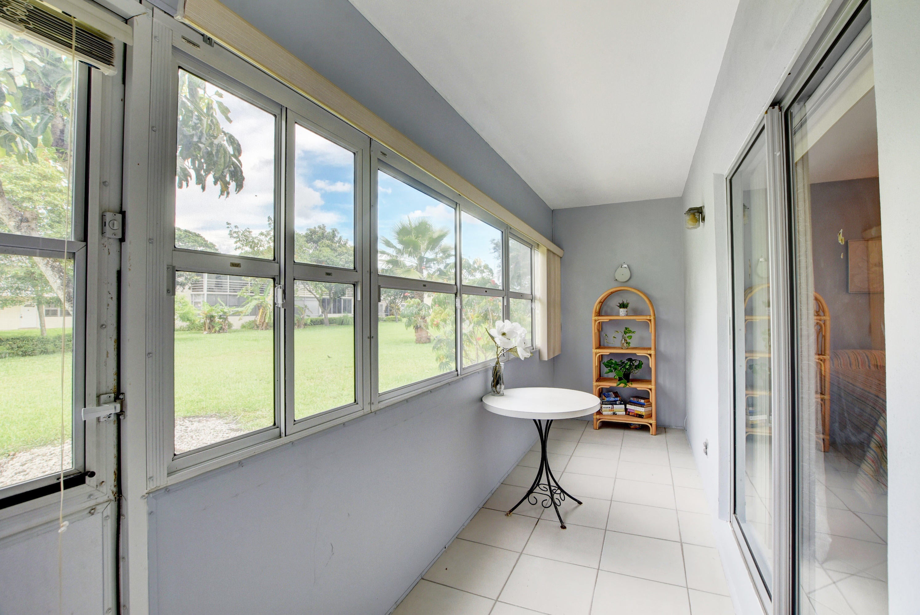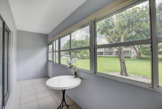 Immaculate 1-bedroom 2 and a half bath condo is located in the desirable Century Village. Very well maintained, freshly painted, renovated hall bath, newer ceiling fans, tiled floors throughout plenty of closet space newer AC features a heat setting for the cooler months. Enjoy the pleasant garden view from your peaceful patio. stylish furniture including television is included in the sale price, move right in! There are numerous activities to enjoy Pickleball tennis, shuffleboard, 1200 seat theater, card room, racquetball and sailing on the beautiful lakes. Located on the community grounds is a hair, nail salon. There is a community bus to transport in the Village and outside to shopping, fine dining and much more. This is a 55 and over community.