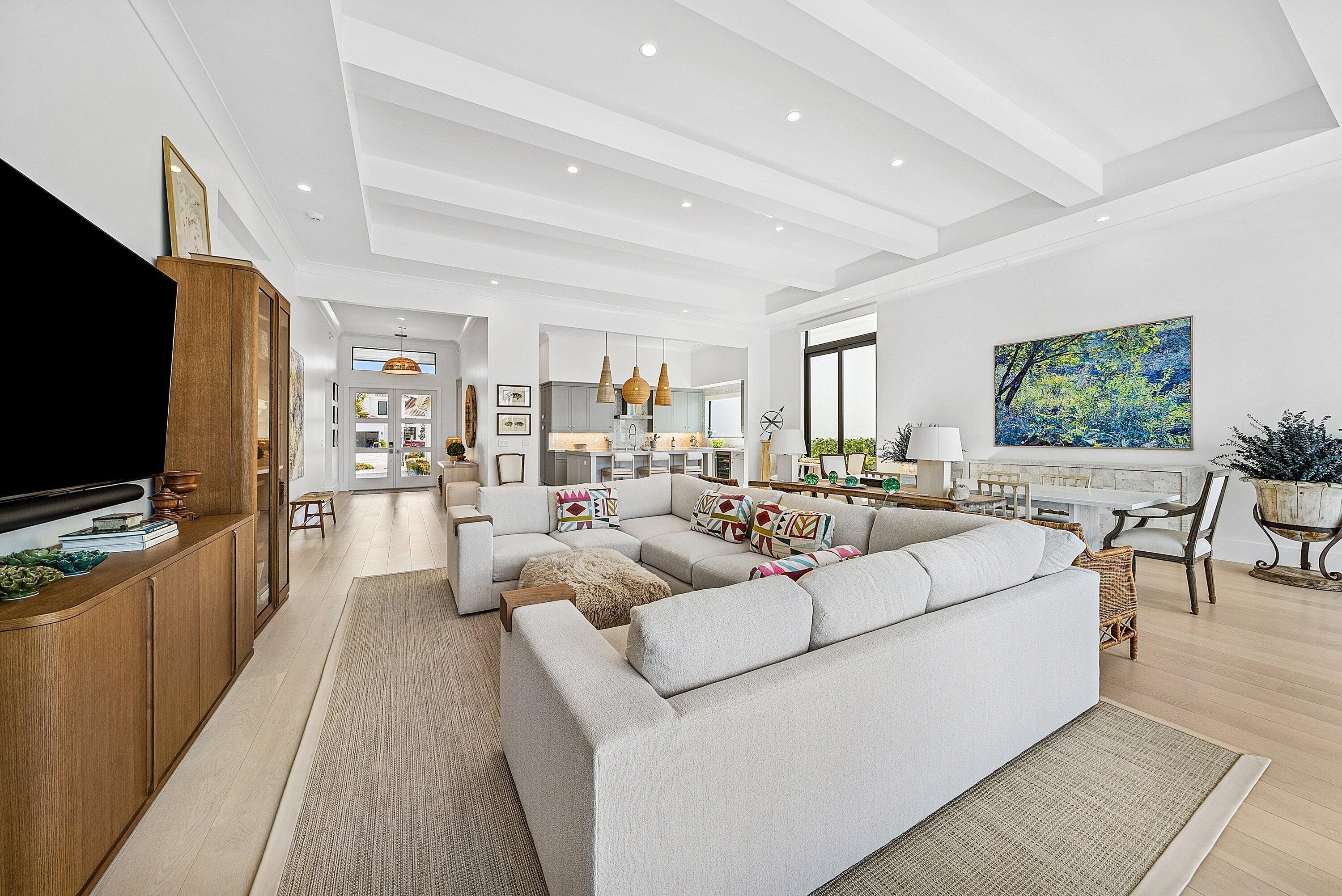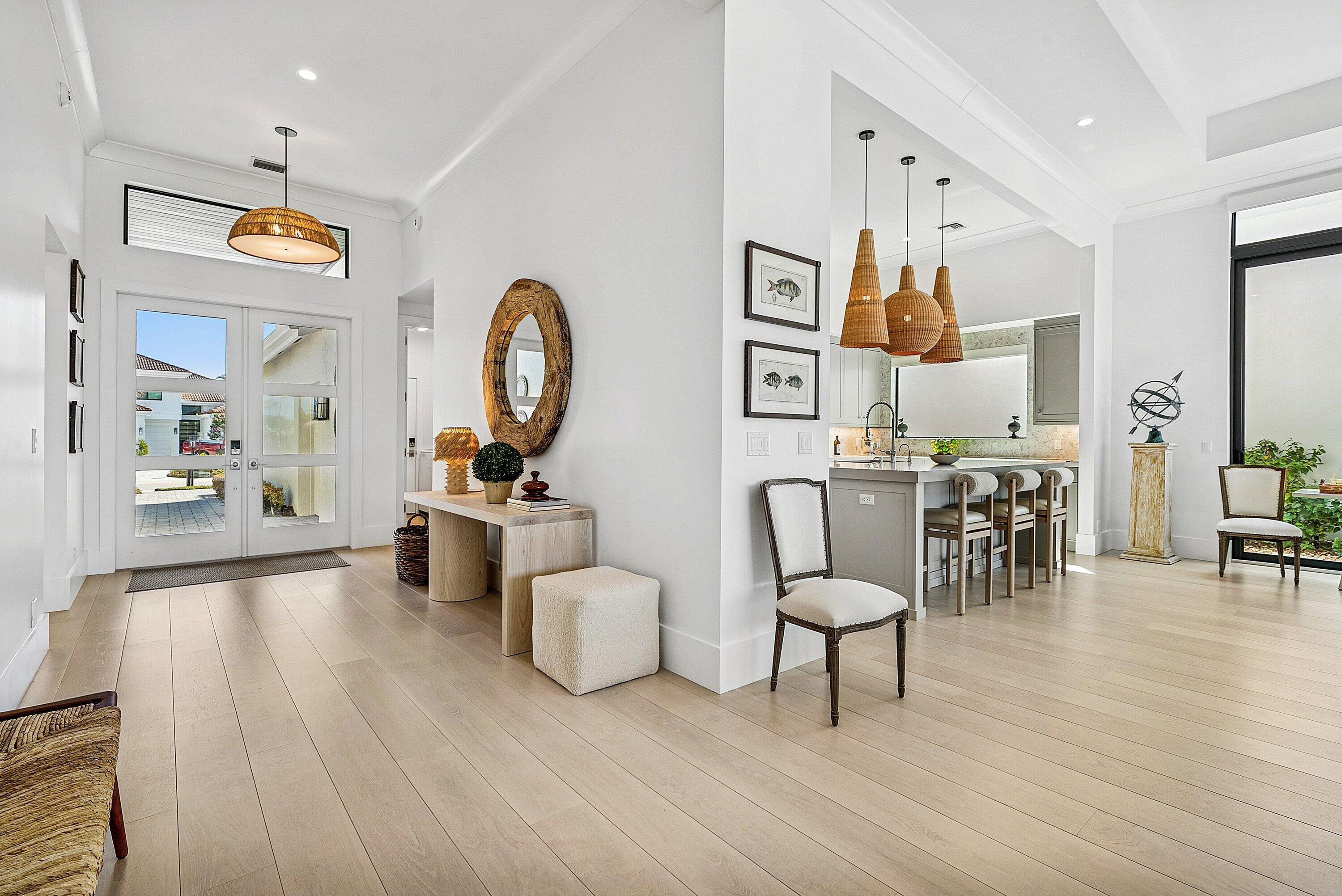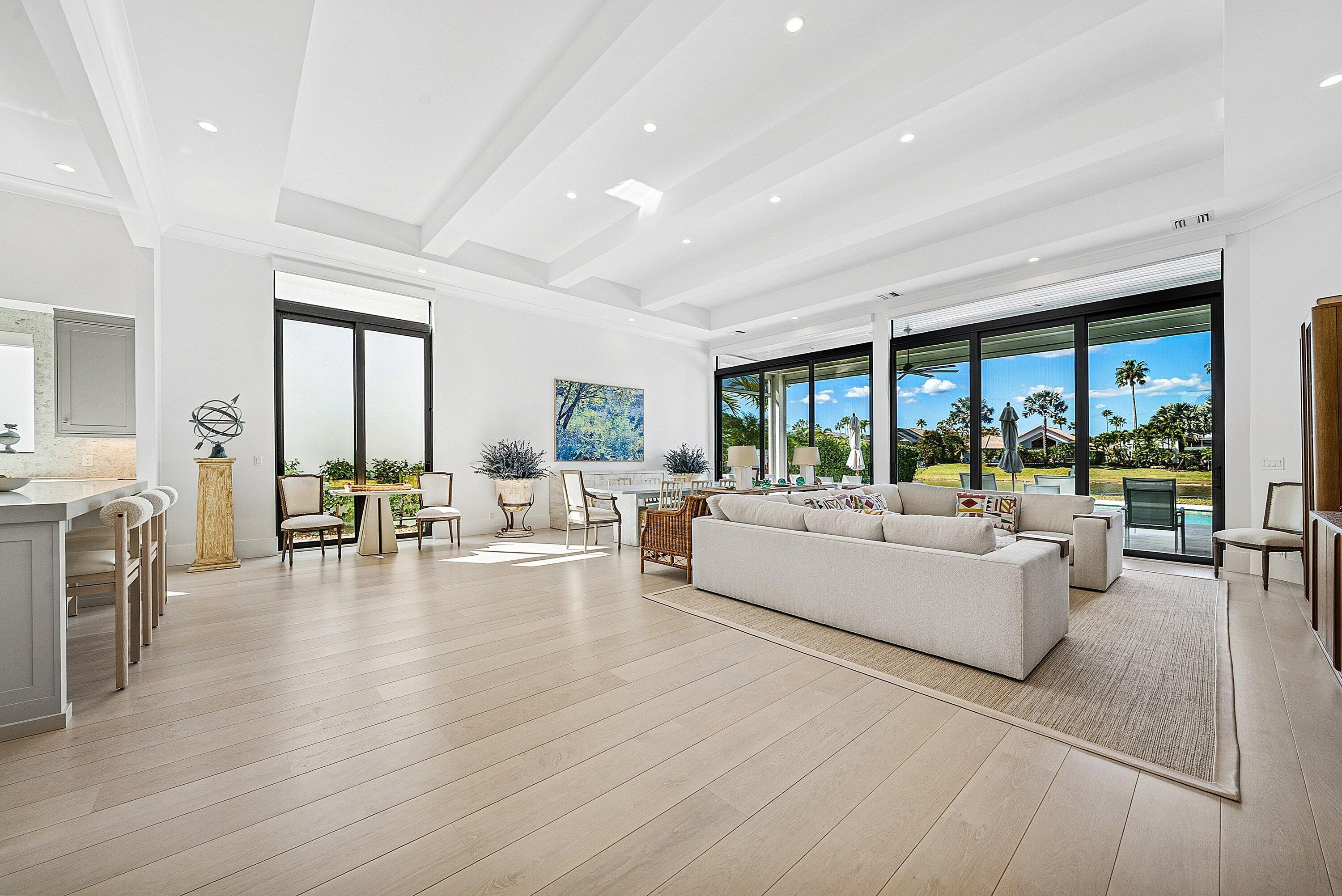 Stunning, fully renovated single story residence available in the prestigious community of Frenchman's Creek, offering breathtaking lake views and nearly 2,700 sf of living space. This beautifully updated home features 3 bedrooms, 4.5 bathrooms and an open, light-filled layout designed for comfort and entertaining. Upon entry, an abundance of natural light pours through a wall of windows along the rear of the home, highlighting the soaring ceilings and seamless flow between the main living and entertaining areas. Tastefully finished in neutral tones, the home showcases engineered white oak hardwood flooring throughout the living areas. The kitchen boasts premium Thermador appliances with custom panel-ready finishes that integrate effortlessly into the cabinetry for a sleek look.The spacious primary suite is complete with two walk-in closets, dual bathrooms - one serving as a convenient cabana bath - and a bonus office space with tranquil pool and lake views. The primary bath features a soaking tub, separate glass-enclosed shower, and generous storage. A full gut renovation completed in 2020 includes new plumbing, electrical, roof, trim details, impact windows and numerous additional upgrades, providing modern style and peace of mind. Don't miss out on this masterpiece, Schedule your showing today! Frenchman's Creek Members enjoy the ultimate concierge lifestyle with resort amenities, state-of-the-art brand new clubhouse, two 18-hole championship golf courses - for only 600 homes. Numerous dining options, navigable waterways, racquet sports, social events and so much more. The exclusive Beach Club, included with membership, located on beautiful Juno Beach allows use of pool, restaurant, beach attendant and water activities.