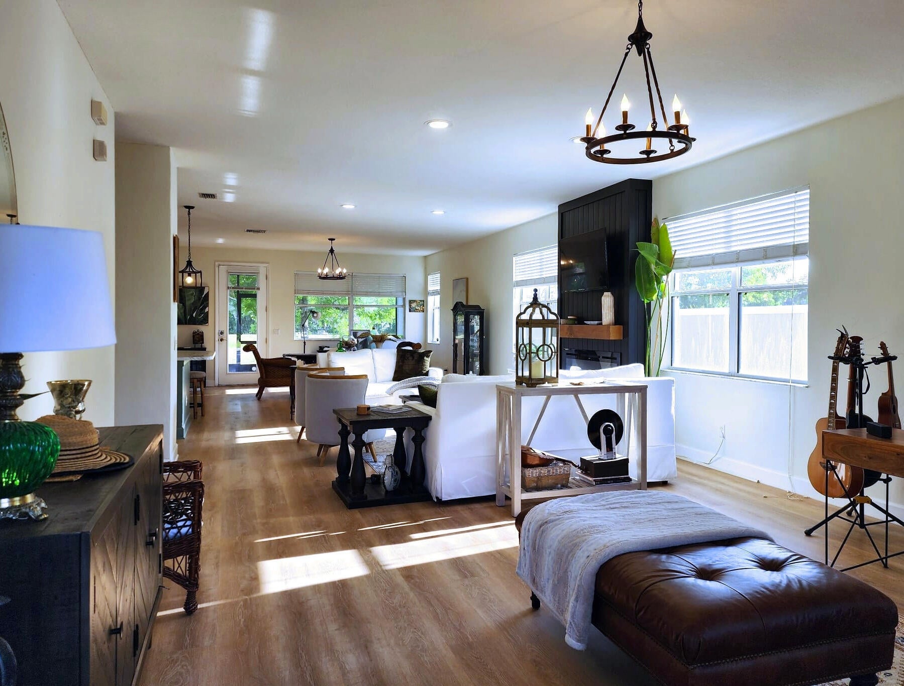 Nestled inside the highly desired Torino area within the Windy Pines community, this well maintained 3 bed, 2 bath home features an open concept living space with a cozy electric fireplace for relaxing or entertaining. A versatile open air flex room, currently used as an office, also provides potential for a 4th bedroom. With 2,195 sq ft on a quiet culdesac, this bright and airy home features timeless, neutral finishes and a move in ready feel. The kitchen showcases newly installed shaker cabinets and opens seamlessly to the main living area, creating a connected and inviting space for everyday living or hosting. Step outside to a screened in lanai overlooking a peaceful greenway that attracts beautiful Florida birdlife - an ideal spot for morning coffee and sunrise views.