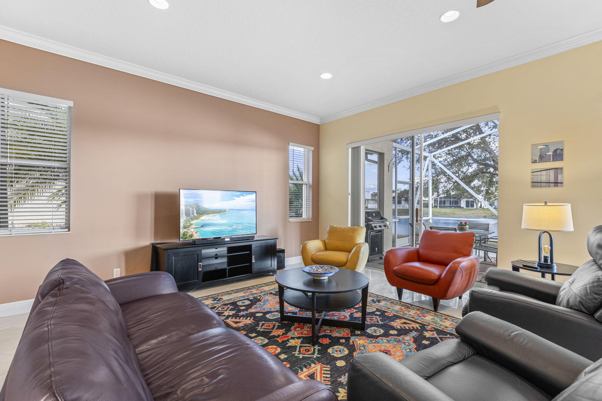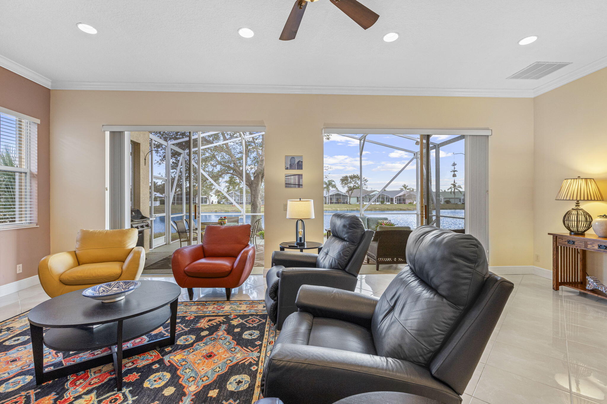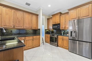 Key West Delight ! Walk up to your cozy front porch and into a amazing wow water view! A light and open great room, with double sliders to open for indoor- outdoor living. This home has an extended large back porch with amazing wide water views. Tall ceilings, tile floors and crown molding throughout. A open eat in kitchen has solid wood cabinets with granite counter tops and backsplash. and newer appliances. The primary bedroom also has water views with a tray ceiling, and mirrored closet doors. The 3rd bedroom does not have a closest so really is a den, but PA shows it as a bedroom. Other upgrades are a new garage door lift, new AC replaced in 2021 and freshly painted. Can be sold Turn Key!see more remarks....This beautiful home is in move in condition with a proud owner that has taken extra care with every detail. Magnolia lakes offers, a large heated pool, amazing club house, exercise rooms, billiard room, pickle ball, tennis and a playground. The streets are lined with sidewalks and street light and beautiful Magnolia trees. All this and just minutes to all shopping, restaurants, hospital and 4 miles to 95.Third bedroom in tax records but no closet currently.