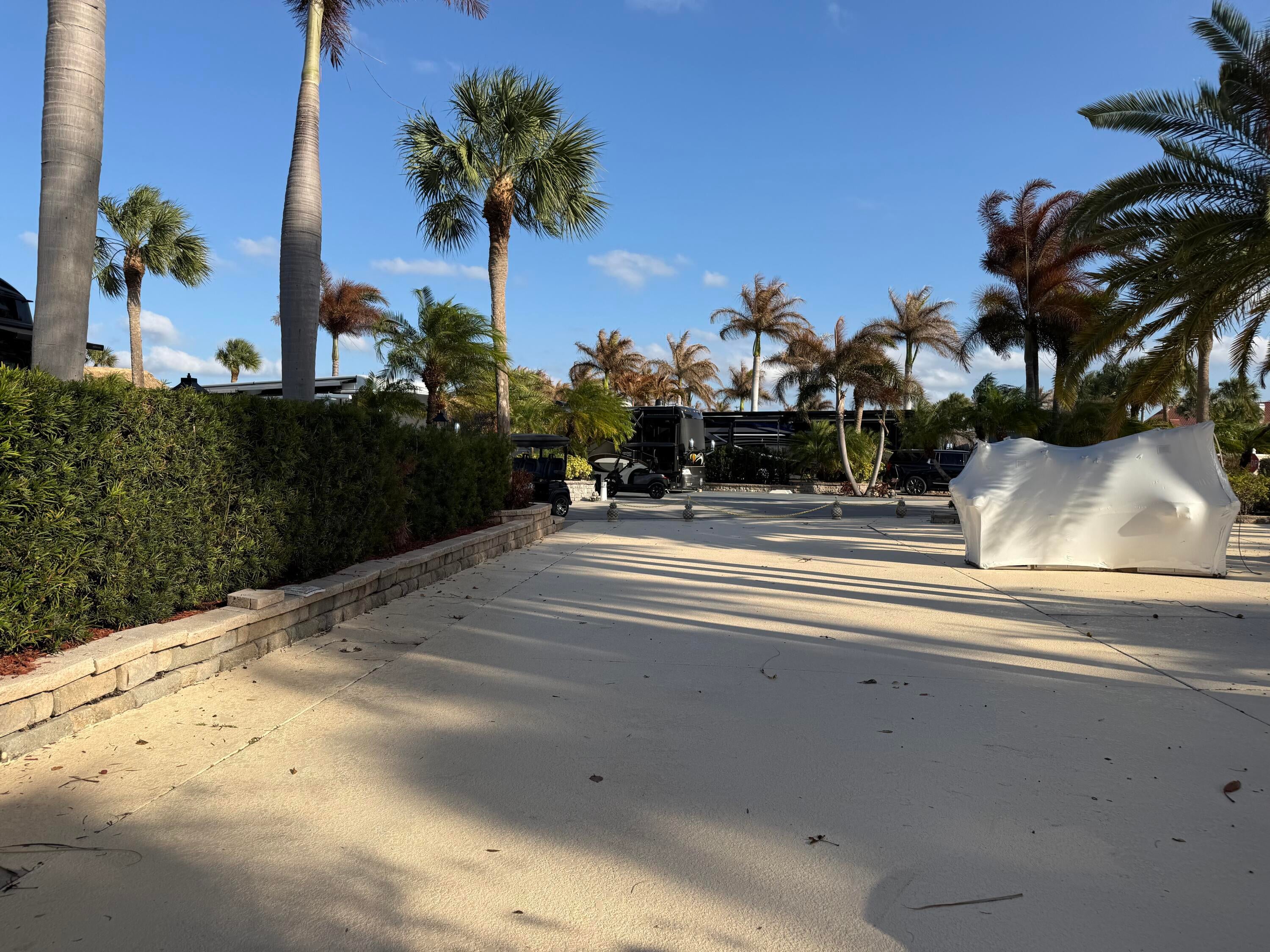Huge lot in the MCRSLW Resort that backs to golf course. Mature palm trees a large fountain