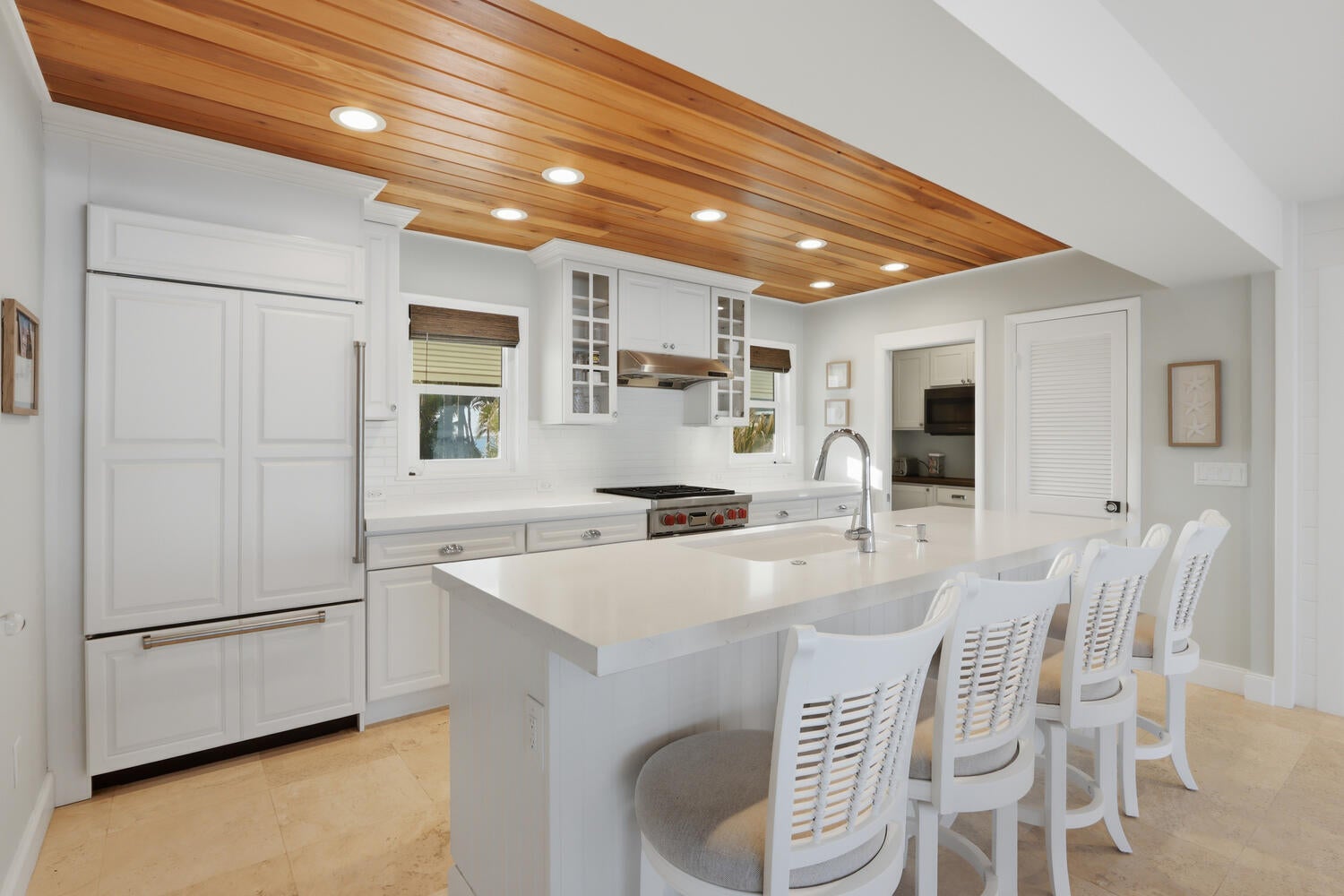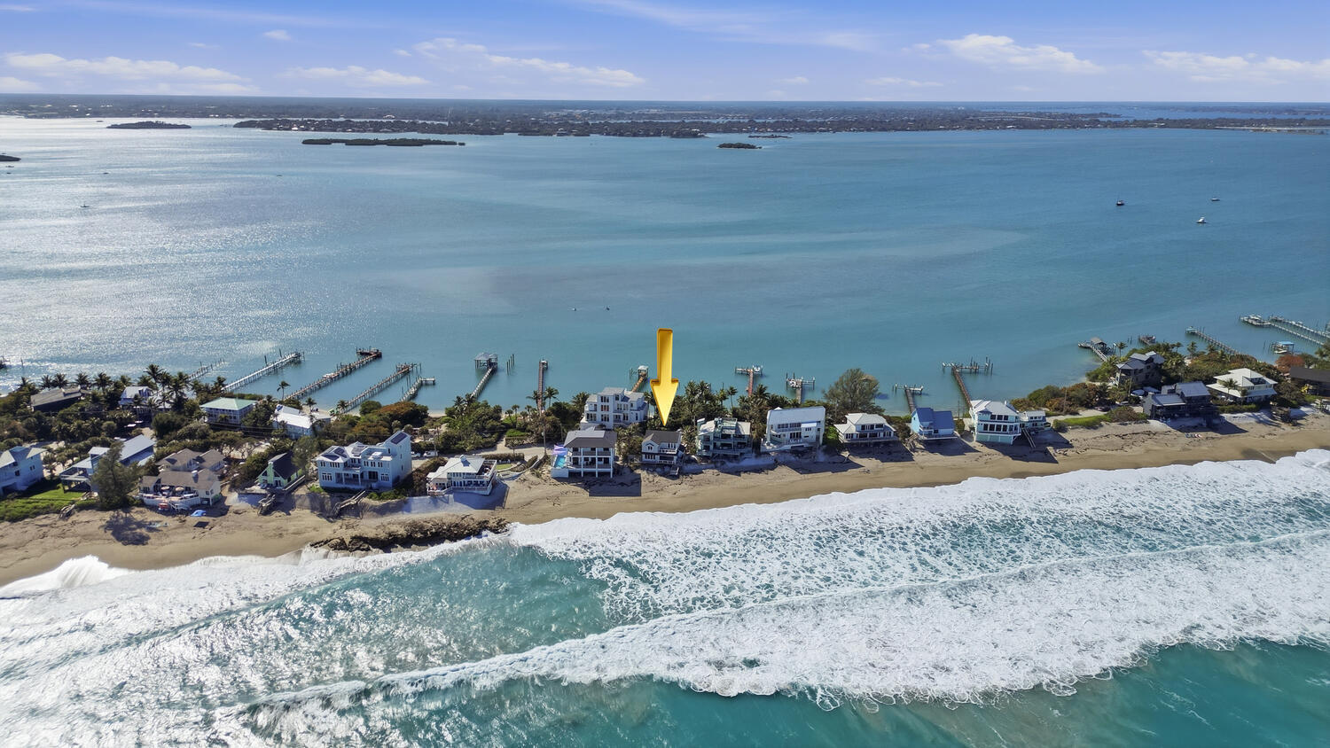 Incredibly rare double-waterfront opportunity! This beautiful home is one of fewer than 60 properties in the USA that borders on both the Atlantic Ocean and the Intracoastal Waterway. Enjoy a sunrise over the ocean, and sunsets over the intracoastal. This breathtaking coastal home offers a large kitchen with Wolf gas range, Sub-Zero refrigerator and two distinct butler's pantries; perfectly poised back deck to listen to the waves; crisp interiors, and absolutely stunning views from every window. Recent updates include gorgeous new deck railings, brand new countertops, and reinforced pilings. Be in the ocean by boat in less than 10 minutes, the 10,000 lb boat lift is ready for your vessel. Walk out your back door to peaceful Bathtub Beach,or dine at popular Sewall's Point restaurants. Impact windows include transferable lifetime warranty. Come see this idyllic waterfront home today. It's the finished beach home you've been waiting for.