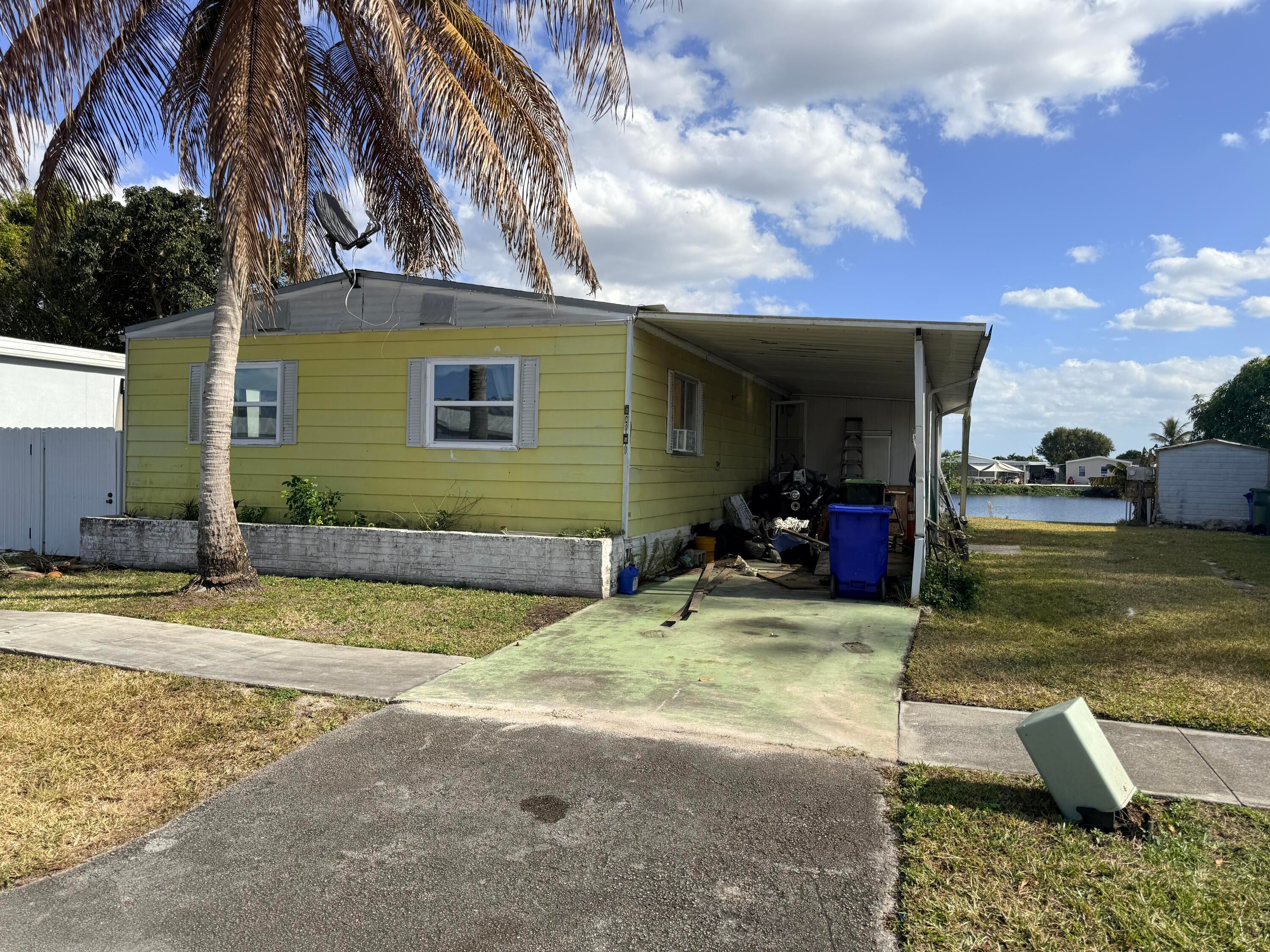 Handyman special!! Right on the lake. This is a Double wide , 55 x 24 Presidential Homes 2 bed and 2 bathrooms original with a grand florida room that gives you flexibility for modifications. Mobile home with Land! Carport and additional shed included. The community has a gym, community room, 2 pools and recreation areas. New mail room and many more improvements coming up.