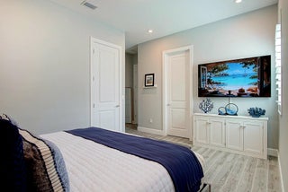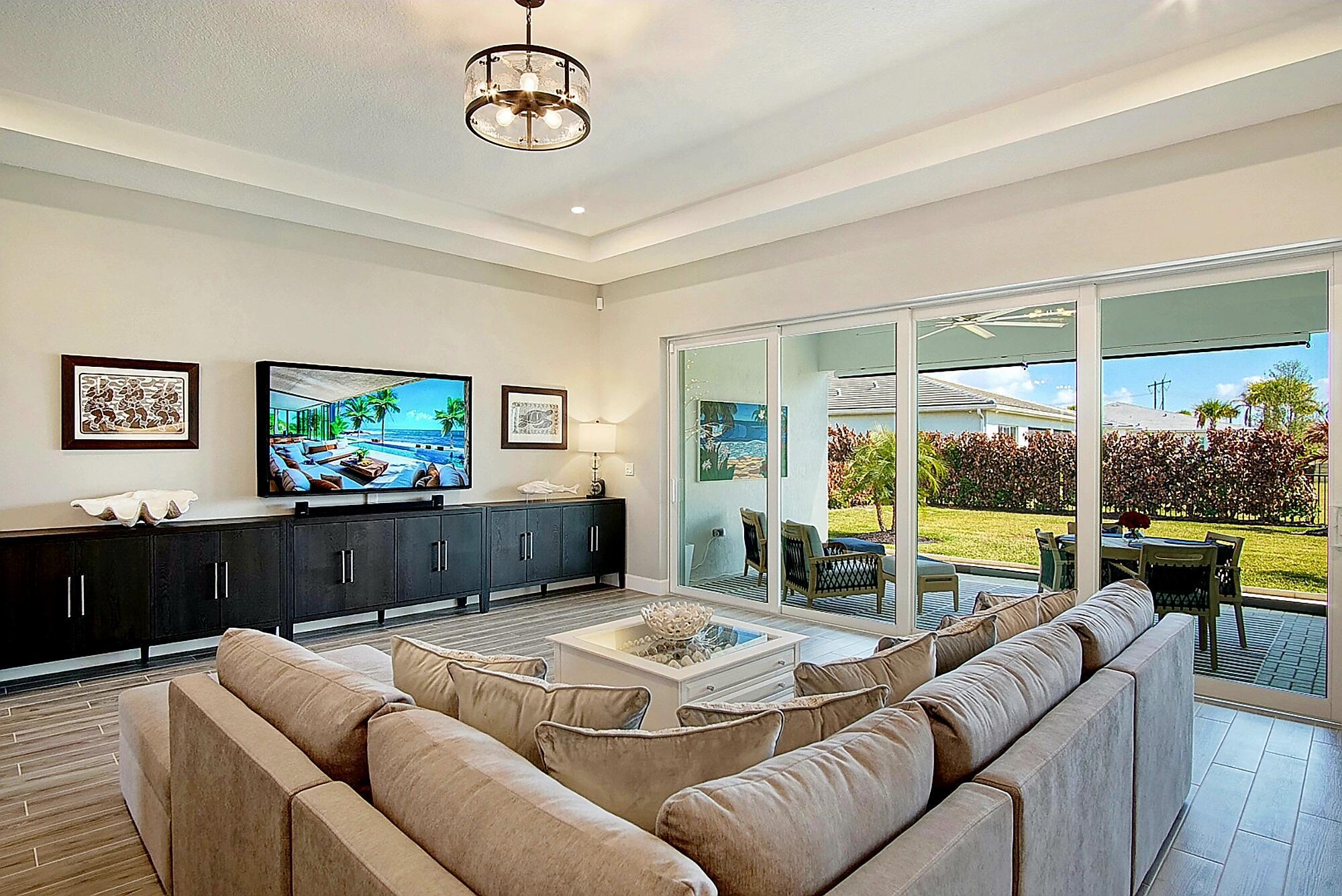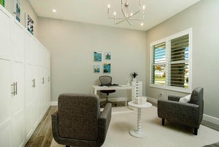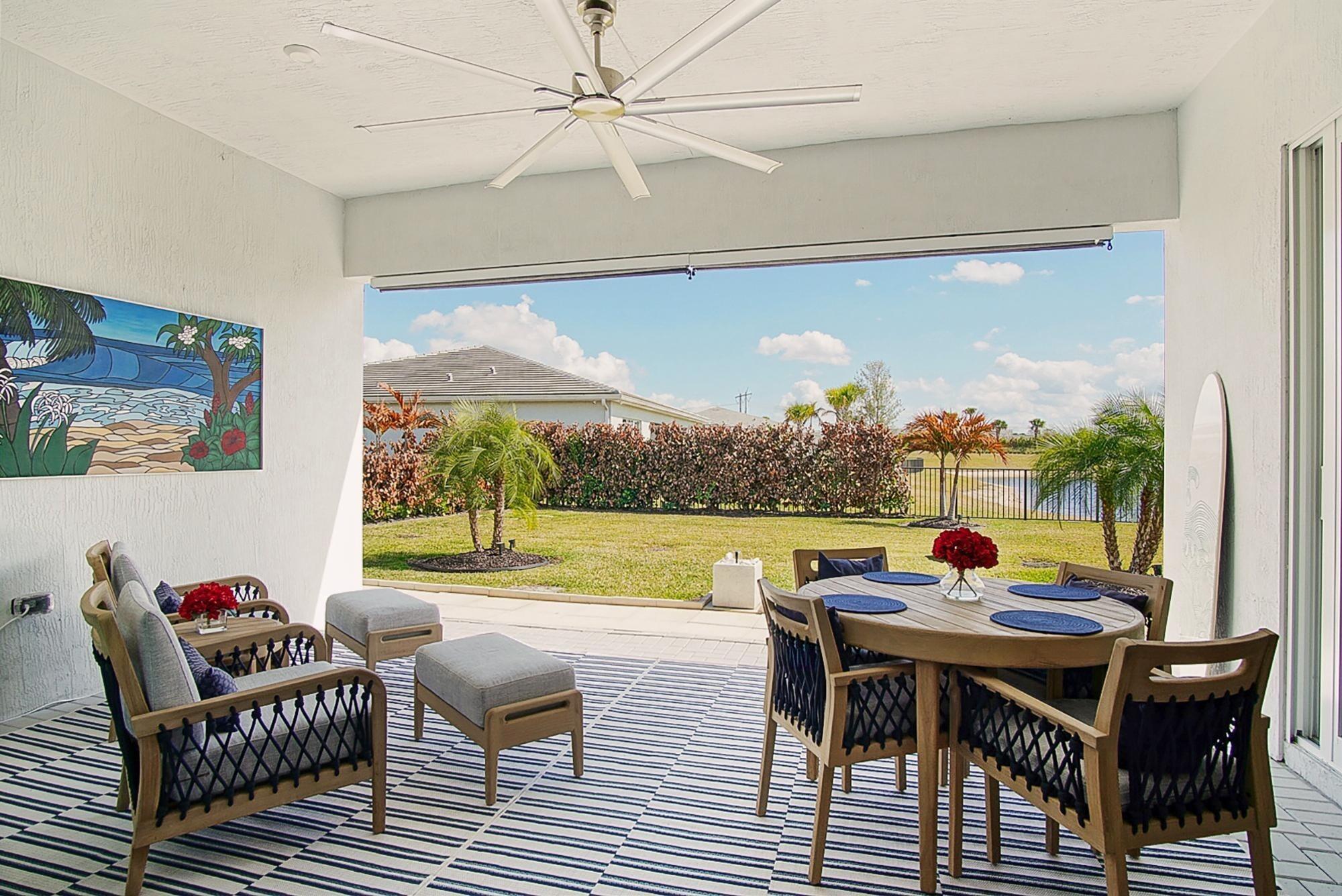 **SEVILLE- TRADITION'S NEWEST COMMUNITY** This stunning 2,809-square-foot single-story Conrad floor plan in the sought-after NEW Community, Seville at Tradition delivers luxury, resilience, and effortless Florida living on the Treasure Coast. Featuring three bedrooms, two and a half bathrooms, and owner-added upgrades you won't find in standard new construction, this home is move-in ready and built for the long haul.As part of the original new build, insulated concrete form exterior walls and hurricane impact windows/doors throughout provide serious storm protection engineered into the home's foundation. The Conrad floor plan includes a separated owner's suite for a private retreat, a dedicated guest suite ensuring visitors enjoy their own space, and a versatile flex room that adaptsto your needs-home office, studio, media room, or whatever you envision. Corner sliding doors open to breathtaking lake views, seamlessly blending indoor comfort with outdoor beauty. The covered front porch invites relaxed evenings and warm conversations. Beyond the standard build, the current owners invested in thoughtful upgrades that elevate every detail. Matching ceramic tile was installed throughout for a cohesive, polished look. Plantation shutters were added to frame every window. The kitchen was enhanced with wood cabinetry featuring soft-close doors and drawers, a ceramic farm sink, cabinet lighting, and an oversized bar perfect for entertaining. An upgraded motorized retractable screen was added to the lanai, allowing you to enjoy the lakefront views in comfort while keeping insects at bay. Security cameras, a video doorbell, and sensors on every window and entryway were added for exceptional peace of mind. Upgraded lighting throughout provides a refined finish, while perimeter fencing was installed to create privacy around your lakefront retreat. Complete Office, Two Guest Rooms and Partial Living Room Furniture are optional in purchase! The Seville at Tradition HOA simplifies life with included yard maintenance and sprinkler system. Community amenities rival a resort-zero-entry oversized pool and cabana area, social and barbecue spaces hosting monthly activities for all ages, playgrounds, basketball and pickleball courts, dog parks, and walking and golf cart paths connecting directly to Tradition Town Center. A brand-new clubhouse and fitness center opening in May will elevate the experience even further. Location is everything, and this address delivers. Tradition Preparatory High School sits minutes away, and a new elementary-middle school combo is under construction within walking distance. A new sports complex with walking trails is also coming to Tradition. Daily conveniences including Publix, The Fresh Market, and Tradition Village Center are all nearby, along with Tradition Hospital and serene Butterfly Park. On Florida's coveted Treasure Coast, where sunshine, opportunity, and community converge, this home stands ready for its next chapter. The combination of a rock-solid new build foundation with carefully selected owner upgrades means you get the best of both worlds-modern construction standards paired with personalized touches that make this house truly feel like home. Schedule your private showing today.