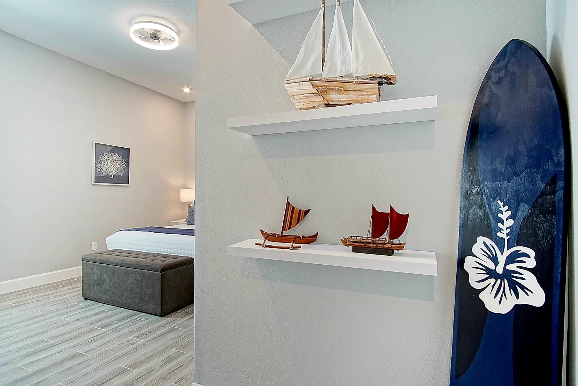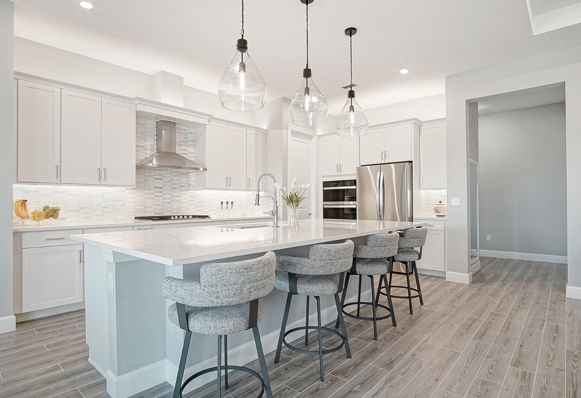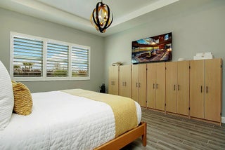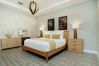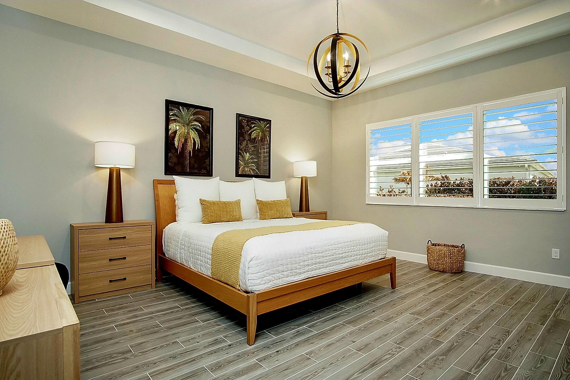 **SEVILLE- TRADITION'S NEWEST COMMUNITY** This stunning 2,809-square-foot single-story Conrad floor plan in the sought-after NEW Community, Seville at Tradition delivers luxury, resilience, and effortless Florida living on the Treasure Coast. Featuring three bedrooms, two and a half bathrooms, and owner-added upgrades you won't find in standard new construction, this home is move-in ready and built for the long haul.As part of the original new build, insulated concrete form exterior walls and hurricane impact windows/doors throughout provide serious storm protection engineered into the home's foundation. The Conrad floor plan includes a separated owner's suite for a private retreat, a dedicated guest suite ensuring visitors enjoy their own space, and a versatile flex room that adaptsto your needs-home office, studio, media room, or whatever you envision. Corner sliding doors open to breathtaking lake views, seamlessly blending indoor comfort with outdoor beauty. The covered front porch invites relaxed evenings and warm conversations. Beyond the standard build, the current owners invested in thoughtful upgrades that elevate every detail. Matching ceramic tile was installed throughout for a cohesive, polished look. Plantation shutters were added to frame every window. The kitchen was enhanced with wood cabinetry featuring soft-close doors and drawers, a ceramic farm sink, cabinet lighting, and an oversized bar perfect for entertaining. An upgraded motorized retractable screen was added to the lanai, allowing you to enjoy the lakefront views in comfort while keeping insects at bay. Security cameras, a video doorbell, and sensors on every window and entryway were added for exceptional peace of mind. Upgraded lighting throughout provides a refined finish, while perimeter fencing was installed to create privacy around your lakefront retreat. Complete Office, Two Guest Rooms and Partial Living Room Furniture are optional in purchase! The Seville at Tradition HOA simplifies life with included yard maintenance and sprinkler system. Community amenities rival a resort-zero-entry oversized pool and cabana area, social and barbecue spaces hosting monthly activities for all ages, playgrounds, basketball and pickleball courts, dog parks, and walking and golf cart paths connecting directly to Tradition Town Center. A brand-new clubhouse and fitness center opening in May will elevate the experience even further. Location is everything, and this address delivers. Tradition Preparatory High School sits minutes away, and a new elementary-middle school combo is under construction within walking distance. A new sports complex with walking trails is also coming to Tradition. Daily conveniences including Publix, The Fresh Market, and Tradition Village Center are all nearby, along with Tradition Hospital and serene Butterfly Park. On Florida's coveted Treasure Coast, where sunshine, opportunity, and community converge, this home stands ready for its next chapter. The combination of a rock-solid new build foundation with carefully selected owner upgrades means you get the best of both worlds-modern construction standards paired with personalized touches that make this house truly feel like home. Schedule your private showing today.