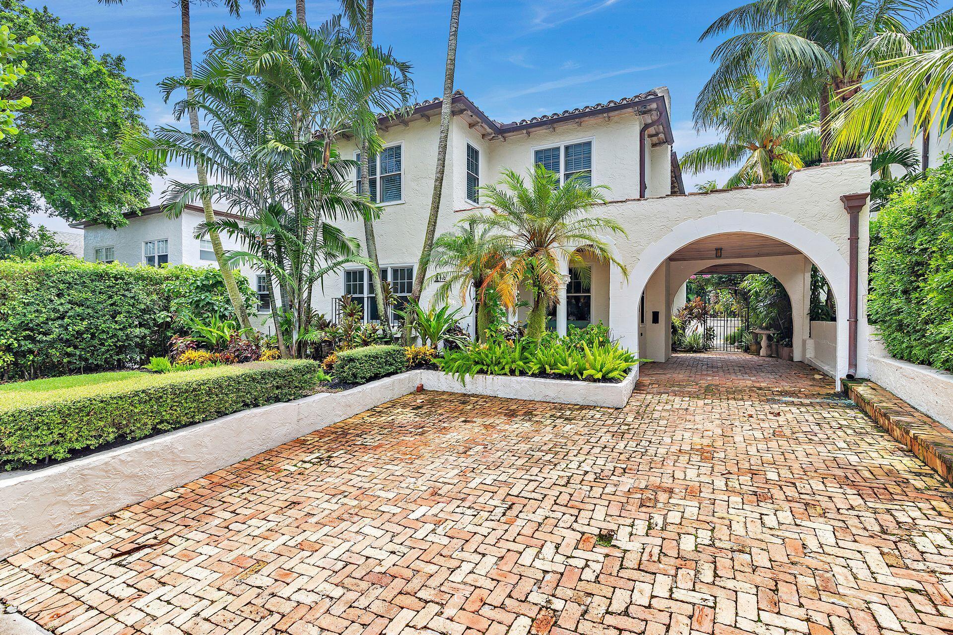Charming Spanish 20s compound on the hill block of fabulous Flamingo Park! This charming home opens up to gleaming hardwood floors throughout. The entry leads into the large formal living room with fireplace. Beyond there is a formal dining room and eat-in kitchen with abundant cabinet and countertop space. There is a family room with high coffered ceilings and access to the backyard. Upstairs are 4 bedrooms and 3 baths. The large primary suite features an ensuite bath with separate shower/tub & dual vanities. The other bedrooms feature large closet space & share bathrooms with original subway tiles. The backyard features a pool and access to the large guest cottage that boasts 2 bedrooms and a full kitchen. Close proximity to The Square, Antique Row, PBIA, Palm Beach & Grandview Market.