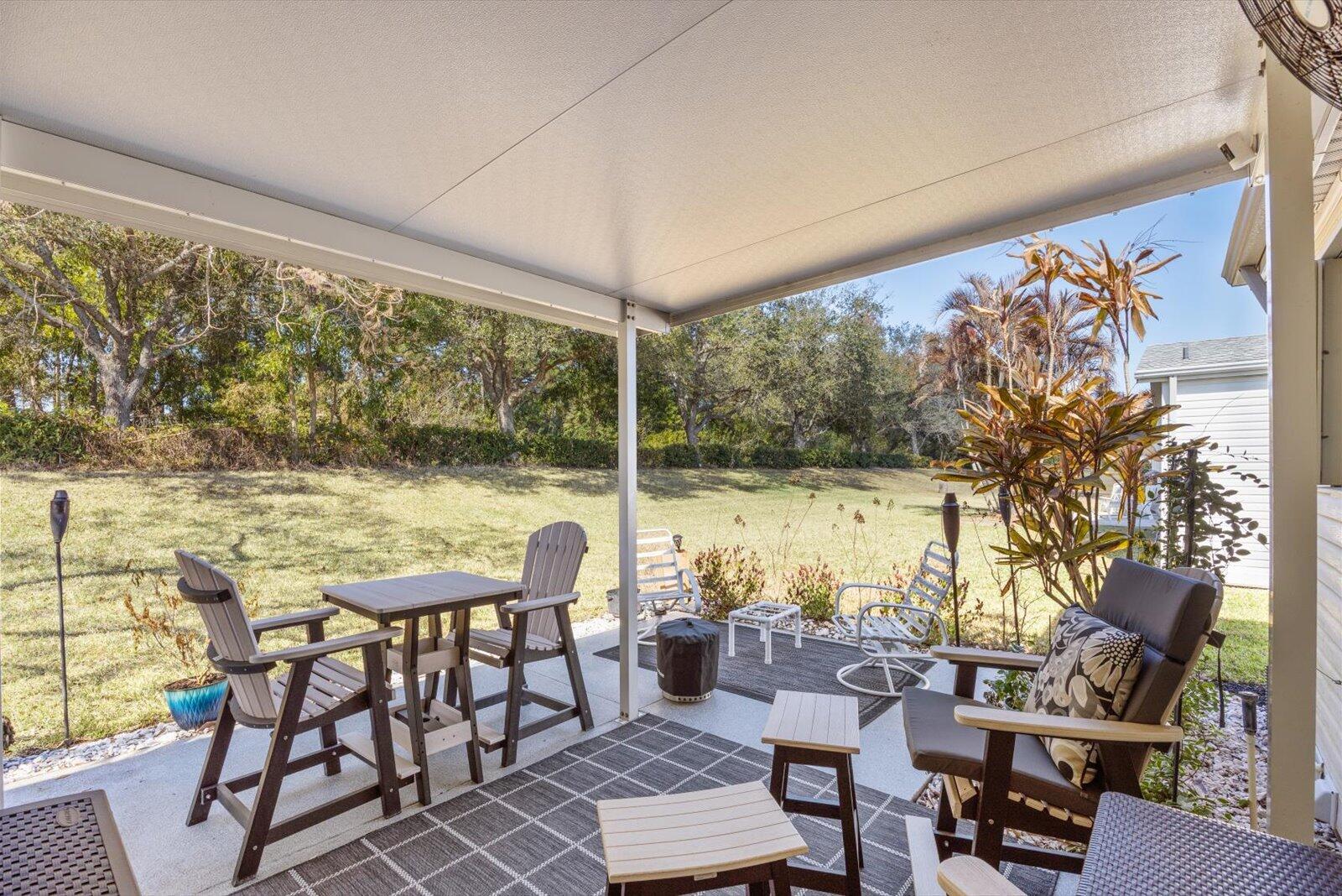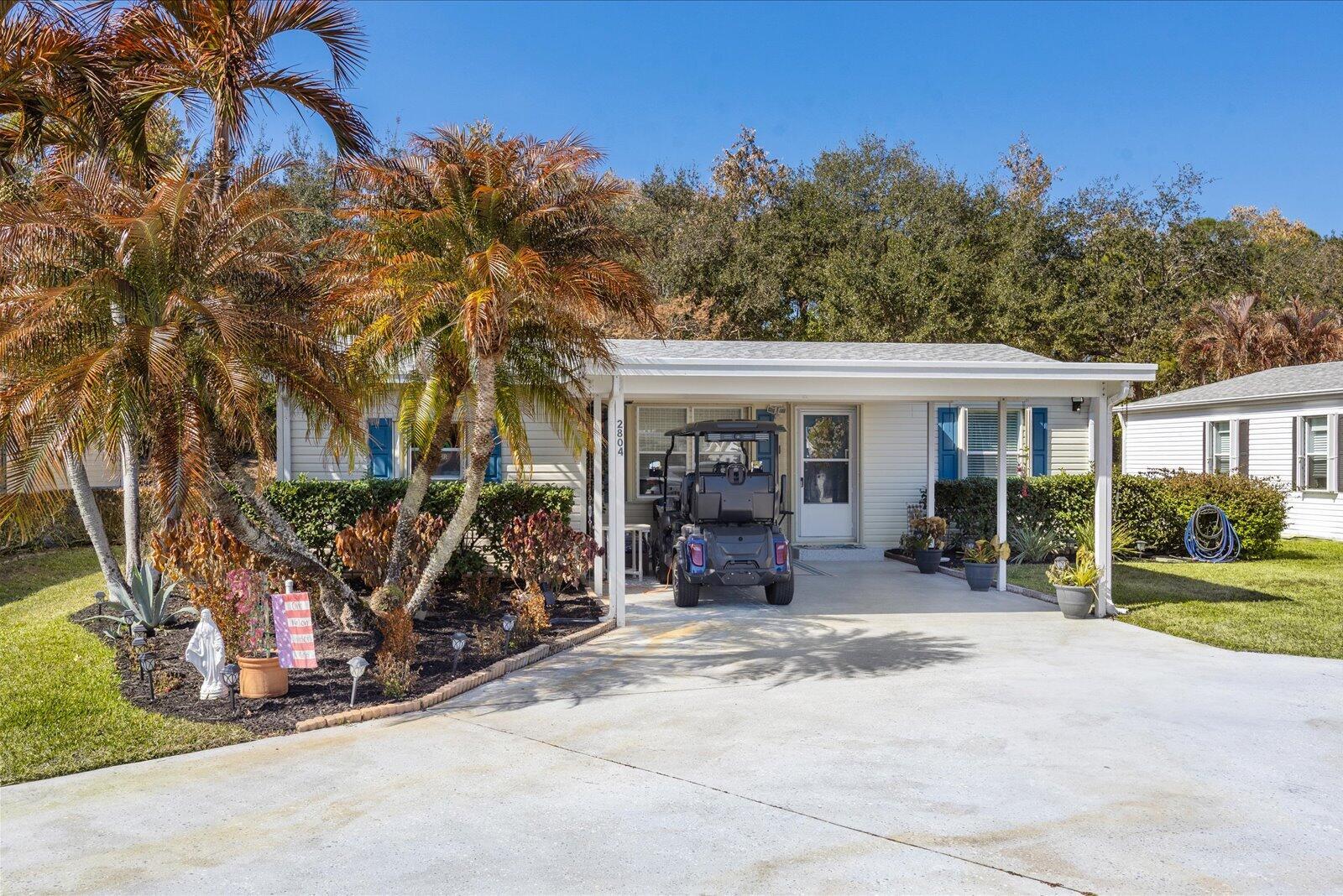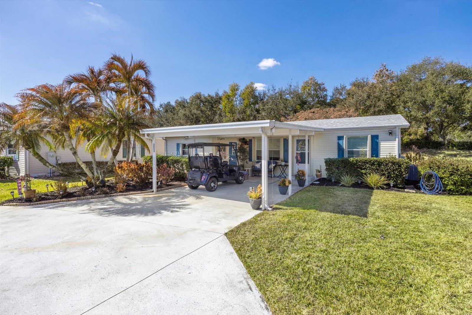 Tucked away in a corner on a cul-de-sac you will find this charming home with loads of privacy. Brand new lanai with sliding acrylic windows, this room will be your oasis!. New roof 2020 & new washing machine., dishwasher & microwave. Split floor plan with new carpet in bedrooms as well. The elongated driveway sure can accommodate about 5 vehicles at least. This is a leased land home.