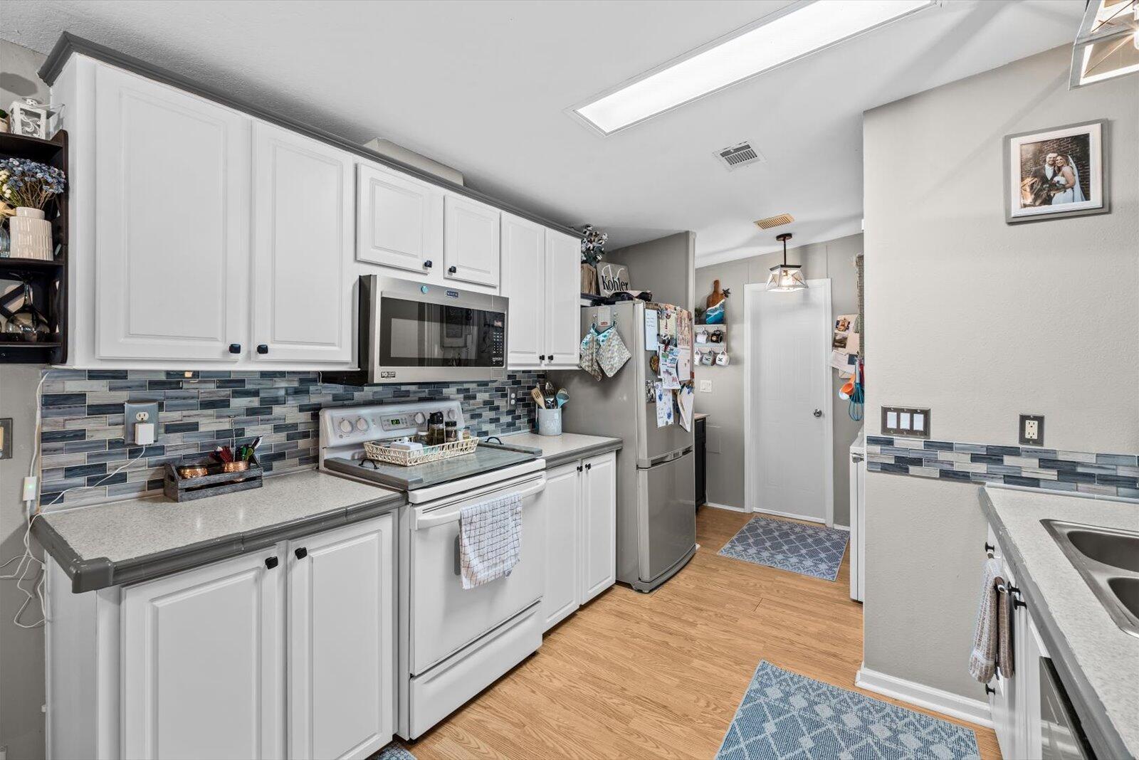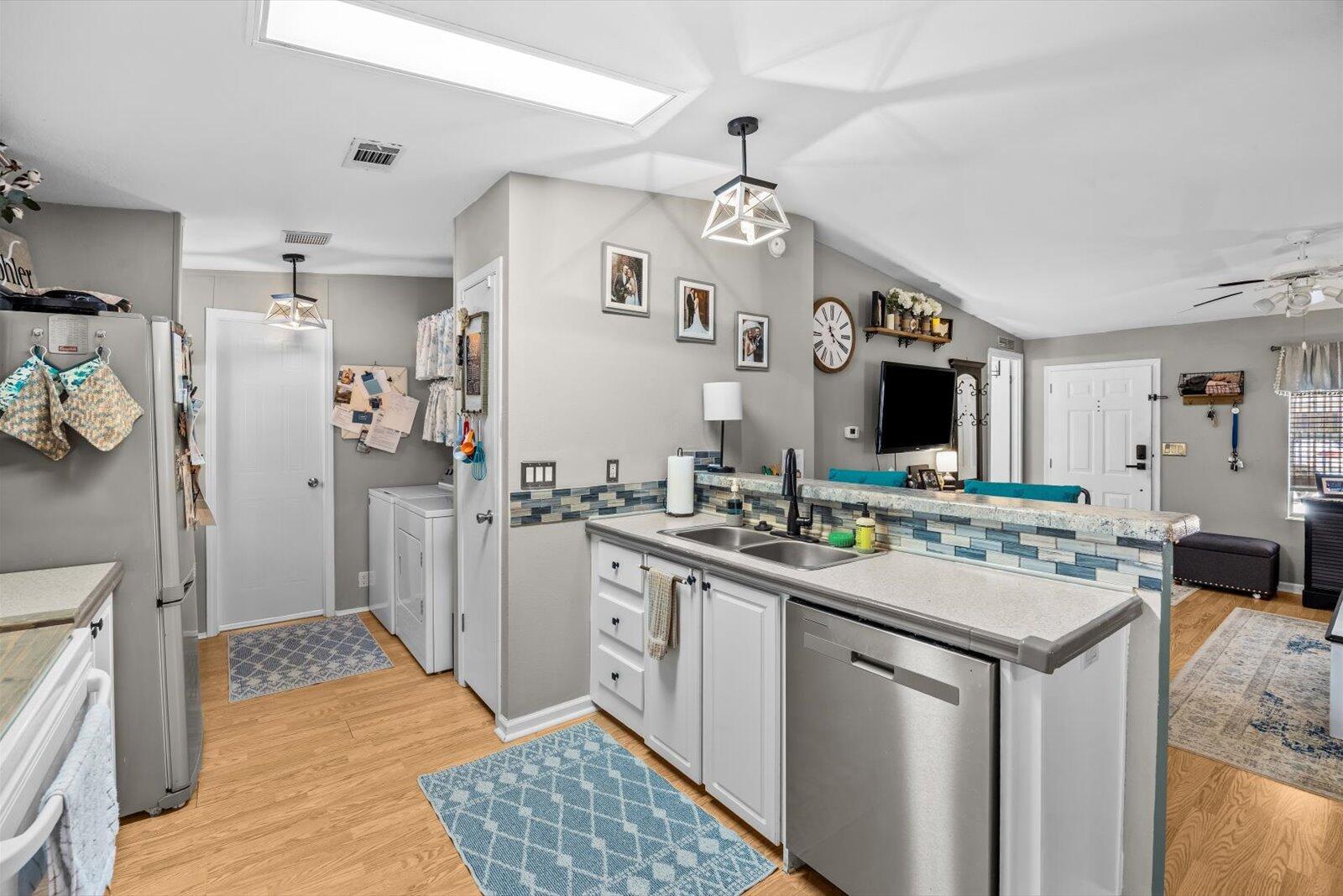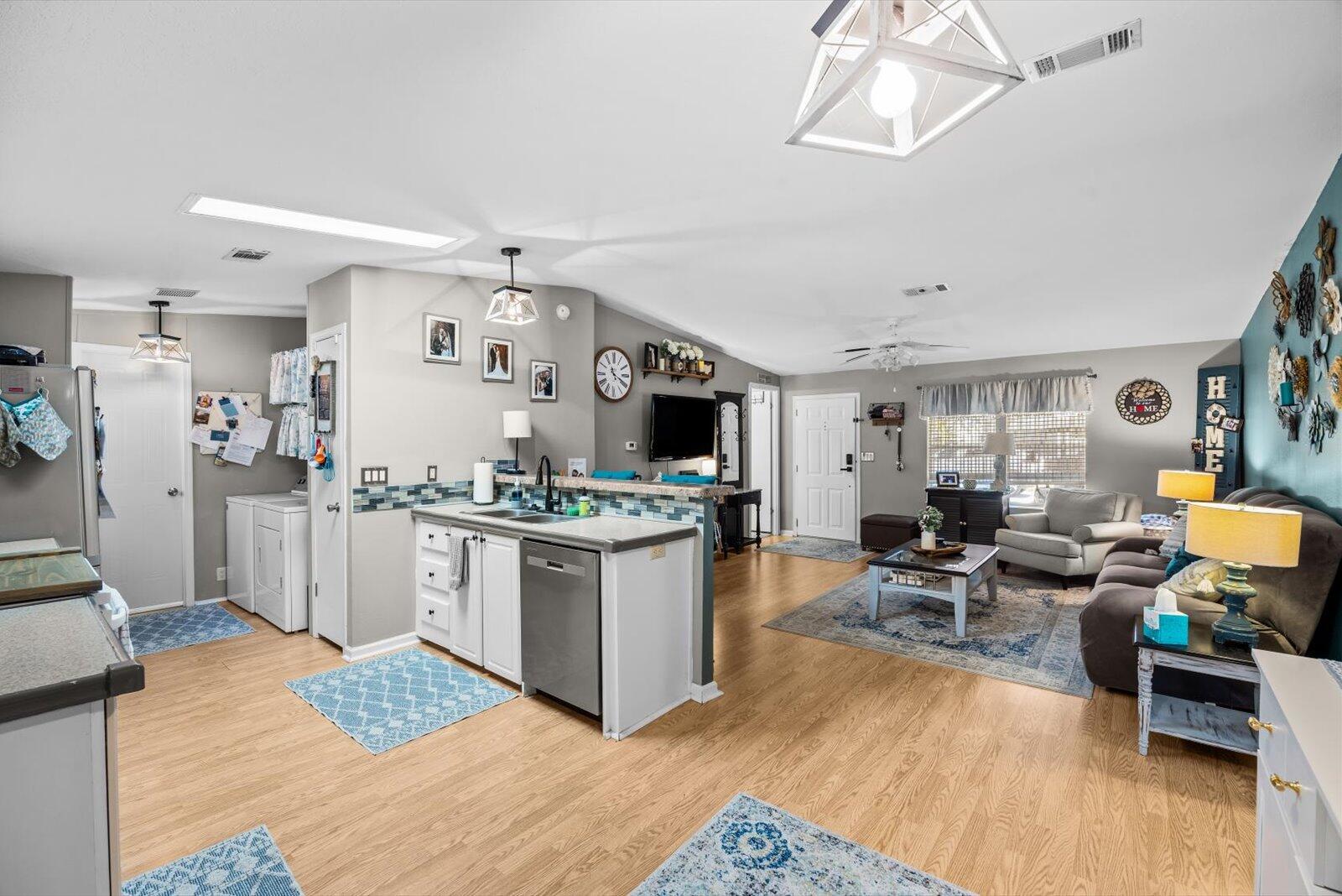 Tucked away in a corner on a cul-de-sac you will find this charming home with loads of privacy. Brand new lanai with sliding acrylic windows, this room will be your oasis!. New roof 2020 & new washing machine., dishwasher & microwave. Split floor plan with new carpet in bedrooms as well. The elongated driveway sure can accommodate about 5 vehicles at least. This is a leased land home.