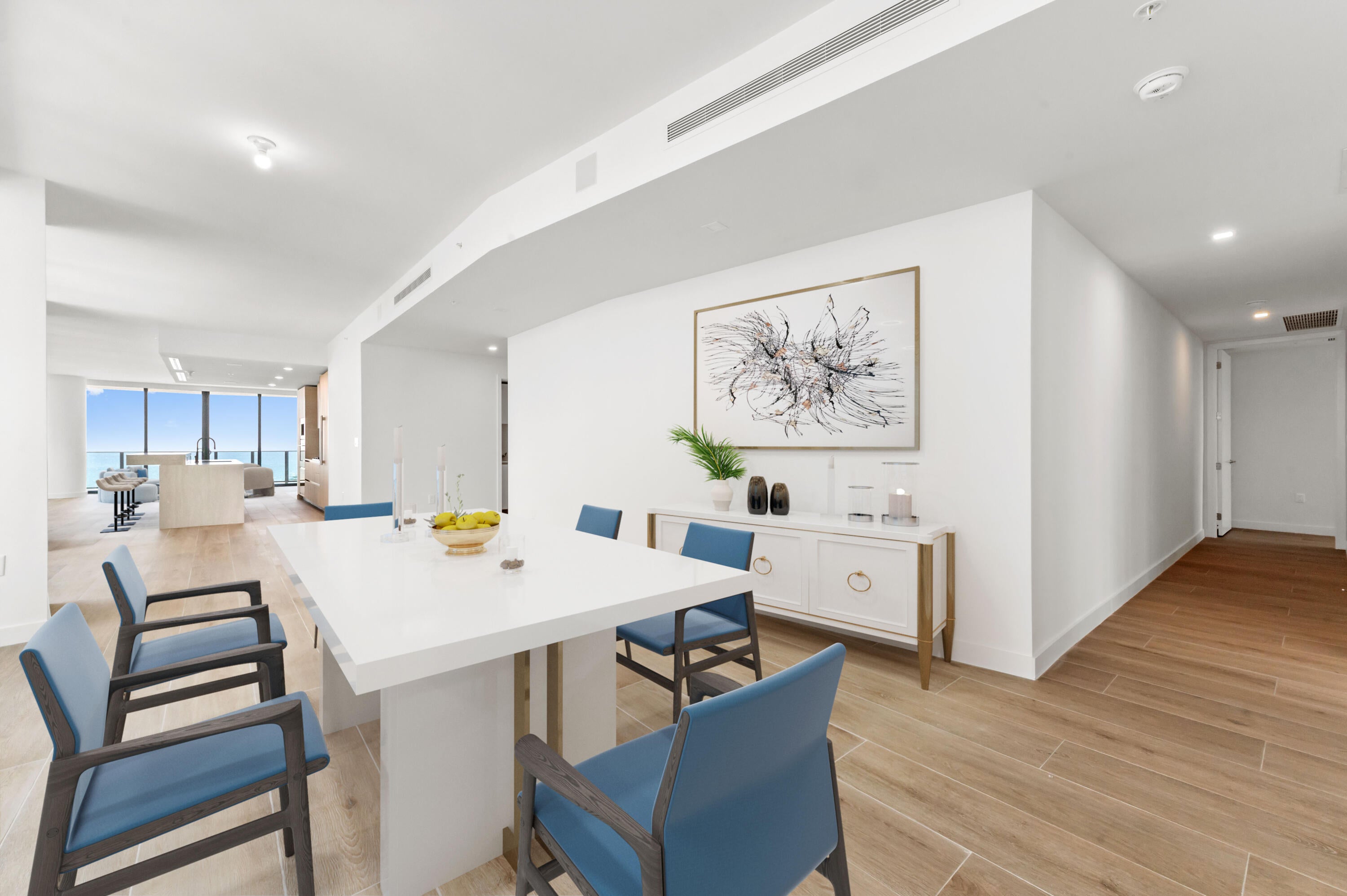 Prepare to be captivated by this newly built, expansive condo at Casamar, where luxury and breathtaking ocean views come together in perfect harmony. This stunning residence offers 3 bedrooms and 3.5 bathrooms, providing an abundance of space and privacy, finished with an upgraded technology package and automated blinds. This unit has been updated with custom light fixtures and built in closets to allow you to move right in! Enjoy the convenience of your own private storage unit on your floor.The living area is a true masterpiece, with floor-to-ceiling windows that flood the space with natural light and showcase incredible panoramic views of the ocean. An incredible wrapped balcony over 1,000sqft extends your living space, inviting you to enjoy the coastal breeze and the mesmerizing sounds of the waves.
