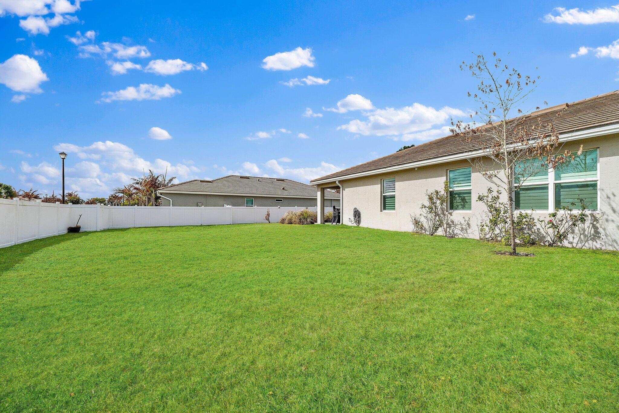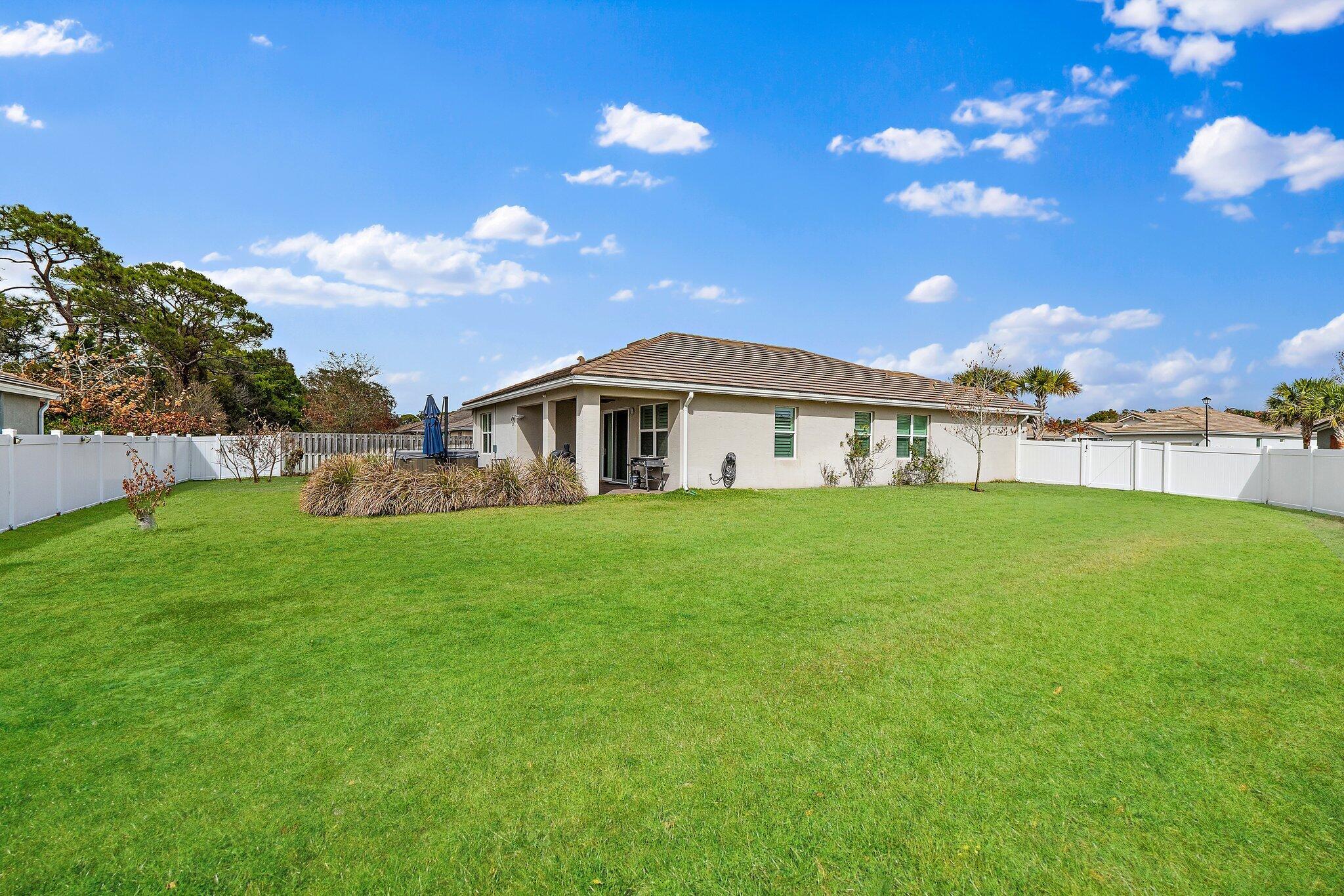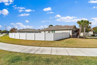Located in the highly sought-after Berry Grove community, this 3-bedroom, 2-bath DR Horton Clifton model offers the perfect blend of newer construction and thoughtful upgrades. Built in 2020 with solid concrete block construction, this 1,808 sq ft home sits on one of the largest lots in the neighborhood, an oversized corner lot just under 1/3 of an acre with full white vinyl privacy fencing (2021). Inside, you'll find plantation shutters, custom built-in pantry /closet storage, and a charming built-in bookshelf nook in the hallway. The open living space flows out to the expanded covered patio, complete with a footer already poured for a future screened enclosure (2022). The backyard is ideal for entertaining or relaxing, featuring a hot tub and plenty of room fora pool. Additional features include an epoxy-coated garage floor, UV lighting in the AC system to help reduce mold and improve air quality, motion lights in the backyard, and security cameras that convey with the home. The house is also wired for a generator with an interlock kit, offering added peace of mind during storm season. Berry Grove is ideally located in the heart of the new downtown Palm City area, just a short walk, or fun golf cart ride, to some of the area's most popular spots, including Lynora's, PapiChulo's, Shark Shack, and Palm City Pizza. Enjoy the nearby outdoor gathering areas designed for residents to relax, play, and connect with neighbors. This vibrant downtown district has quickly become one of Palm City's hottest destinations and homes this close to it are in high demand.