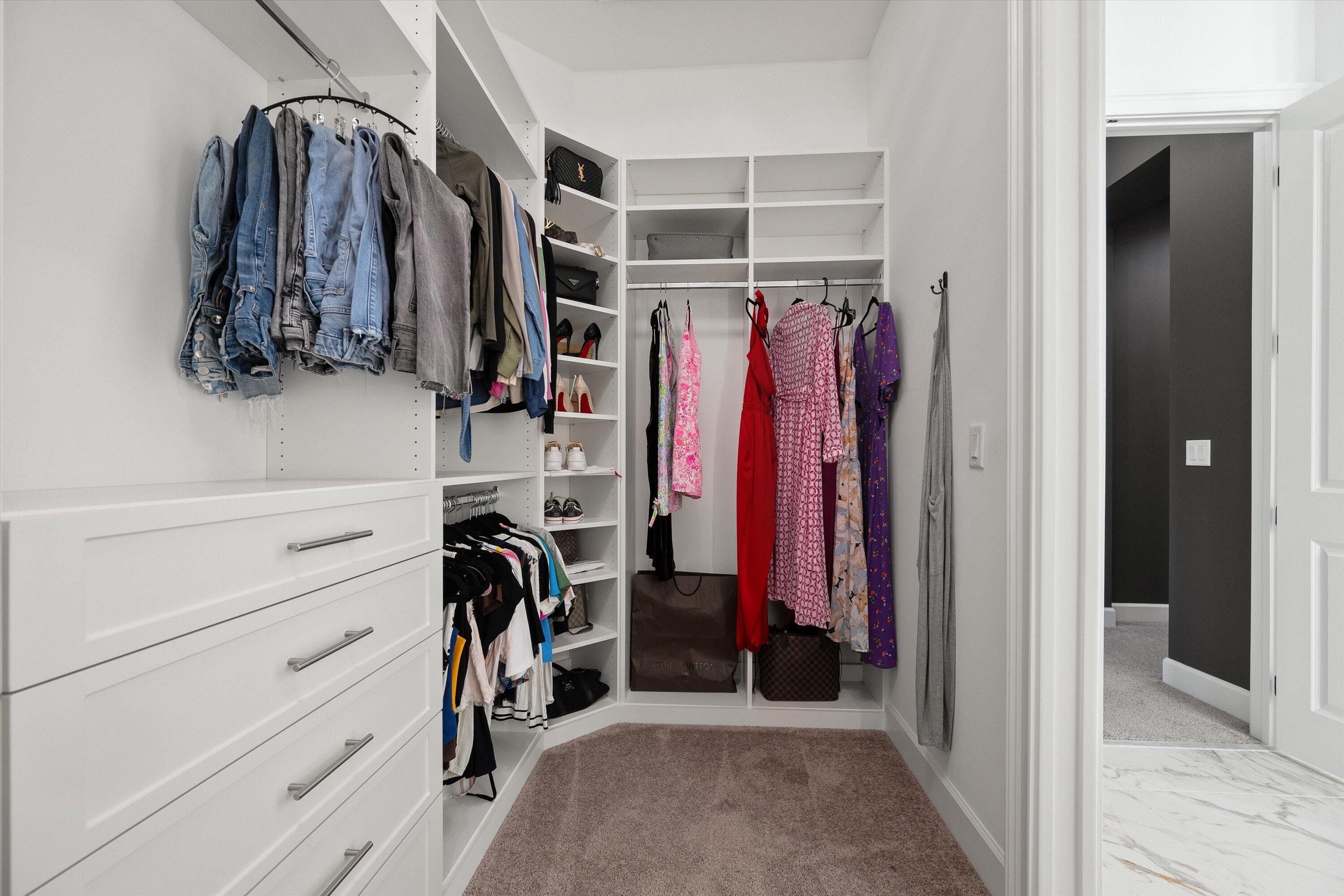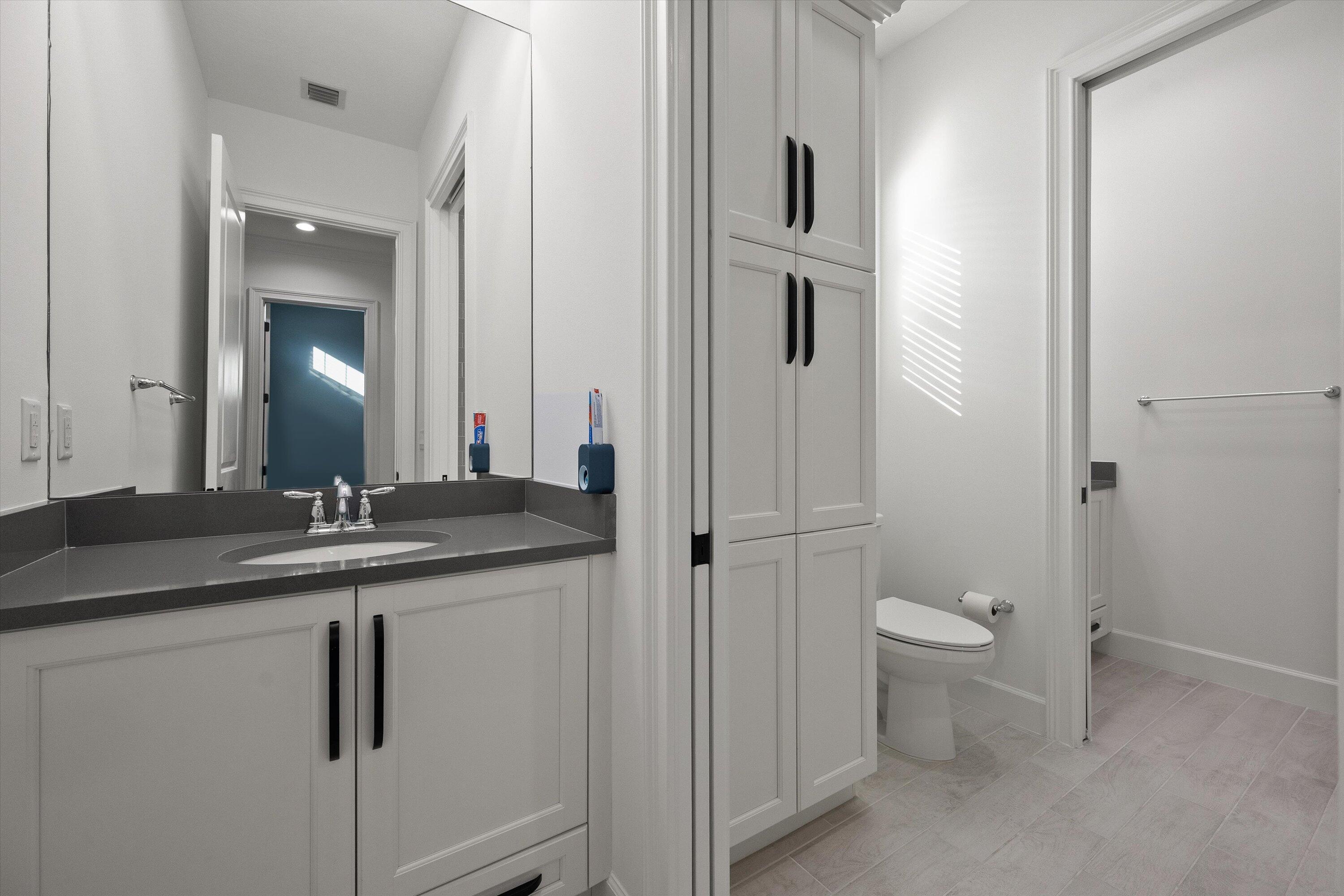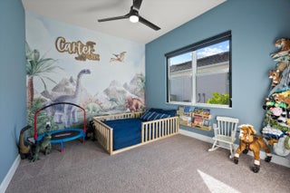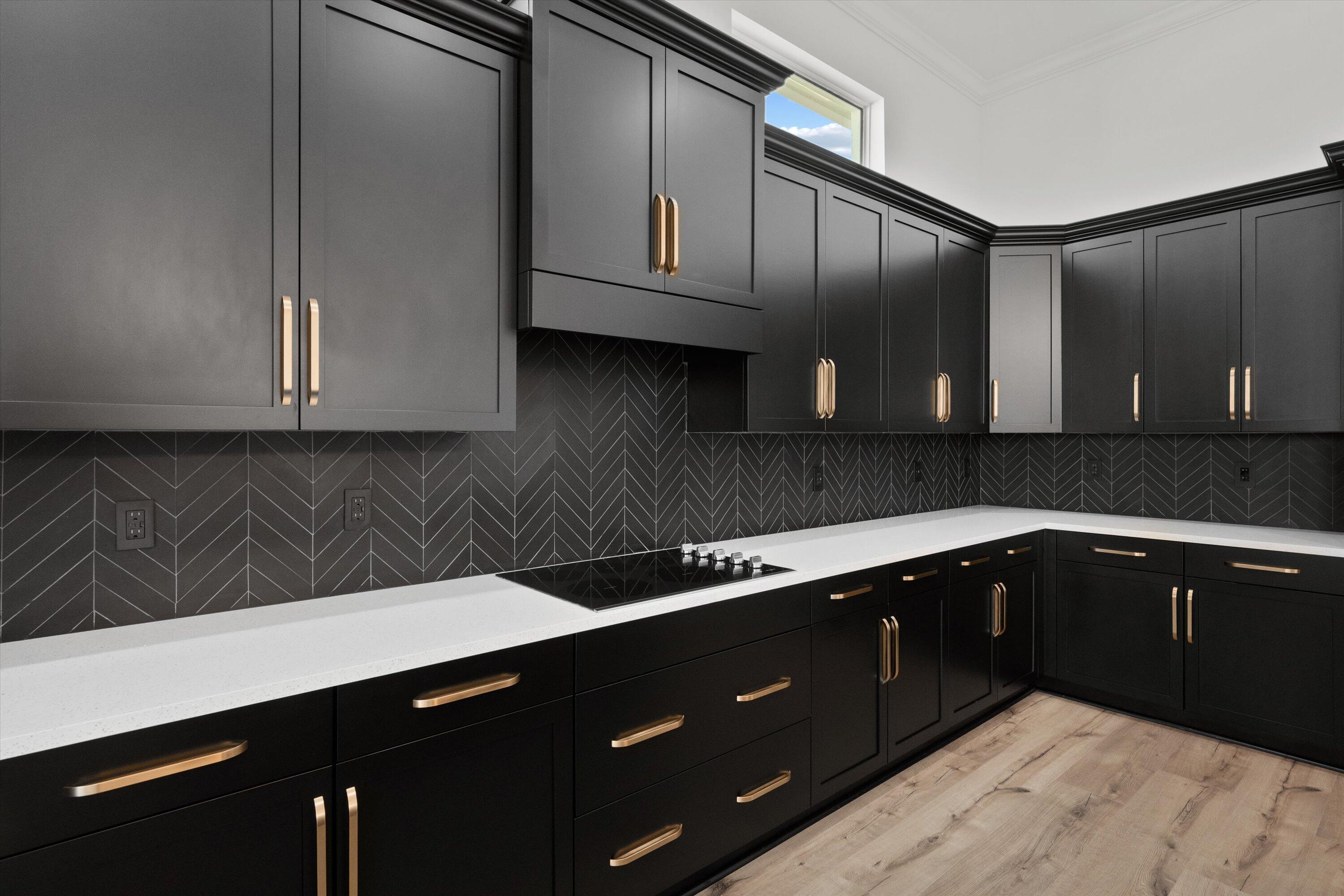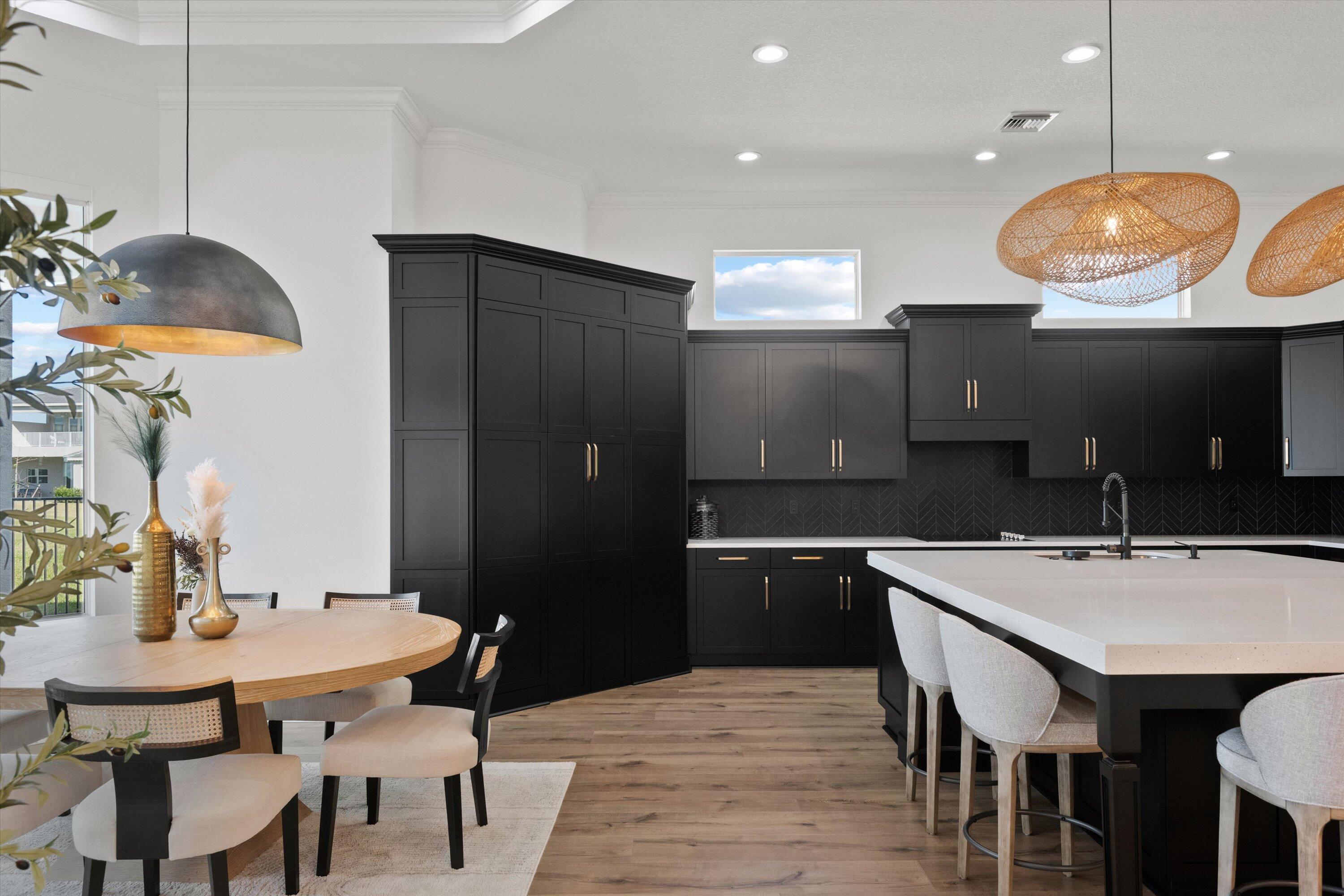 Introducing the magnificent Jupiter Grand Model in the highly sought-after Estates Community of Westlake! This exceptional residence boasts an impressive 6 bedrooms and 4.5 baths, artfully designed to encapsulate luxury living. From the curb, the home's majestic presence is evident with its extended driveway and pathway leading elegantly to the backyard oasis. Step through the luxurious black French doors into a 17'4'' tray ceiling foyer, a masterpiece featuring sleek board and batten design adorned in sophisticated black, complemented by a chic ceiling light fixture. The main areas of this home are graced with stunning wood laminate flooring, providing an elegant warmth and cohesion throughout.The heart of the home, the kitchen, will leave you breathless. With towering 12 to 13-foot ceilings, it showcases black shaker soft-close cabinets accented by striking gold hardware, black plumbing and exquisite white sparkle quartz countertops. The substantial island with a 3" slab accommodates up to seven comfortably, surrounded by additional cabinetry for optimal storage. Enhancing your culinary experience are top-of-the-line stainless steel appliances, including a French door refrigerator, a decorative pantry panel and custom-built closet storage. The herringbone black backsplash paired with black plumbing fixtures brings a touch of sophistication, while two eye-catching rattan light fixtures artfully illuminate the space. Adjacent to the kitchen, the dining area is a visual delight with a stunning bay window complete with roller shades, offering breathtaking views of the lake and unforgettable sunsets, all beneath a pendant light fitting. Nearby, the expansive great room (21'2 x 22) beckons with its impact glass sliders and roller shades, ideal for seamless indoor-outdoor living and is adorned with a magnificent chandelier. Retreat to the master suite, a peaceful haven featuring plush carpeting and panoramic lake views. Its ample dimensions (16 x 16'11) are accentuated by a trio of windows, anchored by a picturesque middle pane, complete with blackout shades and a stylish ceiling fan. Relish in the lavish master bath, showcasing a double showerhead, marble-like wall tiles with sleek black hardware, and an open glass enclosure concept that redefines relaxation. The elegant light wood shaker cabinets, soft closing with sparkling white quartz countertops, provide quaint sophistication alongside two generous custom walk-in closets. The additional bedrooms in this illustrious dwelling have been thoughtfully designed with comforts in mind. Plush carpeting, blackout blinds, custom closets and an array of Jack and Jill style bathrooms. No detail has been overlooked, from the freestanding sinks, timeless white shaker cabinets with gray quartz tops, contemporary black hardware and chrome plumbing, to the luxurious light gray subway tiles and handy linen closets. Bedroom 4 offers extra space with two closets, high ceilings, and windows equipped with blinds. Bedroom 5's flexibility is its charm, currently fitted as an office with impeccable custom woodwork, easily converted back to a standard guest room. Its adjoining bathroom is a classic symphony of vertically stacked white tiles, complemented by timeless white cabinetry and black hardware. Bedroom 6 offers a unique twist, transformed into a plush theater room with all-black decor and blackout shades, with en-suite facilities echoing the home's sophisticated design language of white cabinets, quartz counters, and wood-like tile flooring. Not to miss are the strategic storage solutions sprinkled throughout the home, including an impressively sized laundry room equipped with a laundry tub, black shaker cabinets, and gold touches. And yes, a convenient powder bath further enhances the functionality and style of this dream home. Additional highlights include a mini-split A/C system in the garage perfect for a home gym, workshop, or climate-controlled storage. The outdoor realm is sheer paradise with a 41x44" covered lanai boasting 12" soaring ceilings to entertain or unwind. The fully fenced backyard features a complete astro-turf transformation for easy maintenance, inclusive of a delightful putting green and sandpit for endless enjoyment. An outdoor built in BBQ setup completes the backyard experience ideal for hosting, grilling, and enjoying Westlake's indoor-outdoor lifestyle. This extraordinary estate offers an unmatched combination of luxury, functionality, and style, making it truly worth a million dollars. Don't miss out on this exclusive opportunity to live in one of Westlake's finest homes schedule your private tour today!