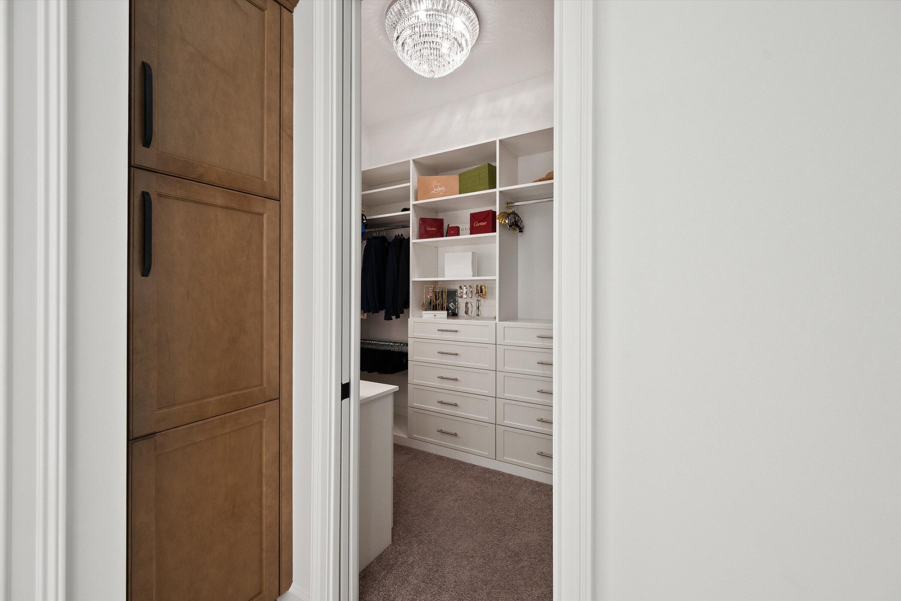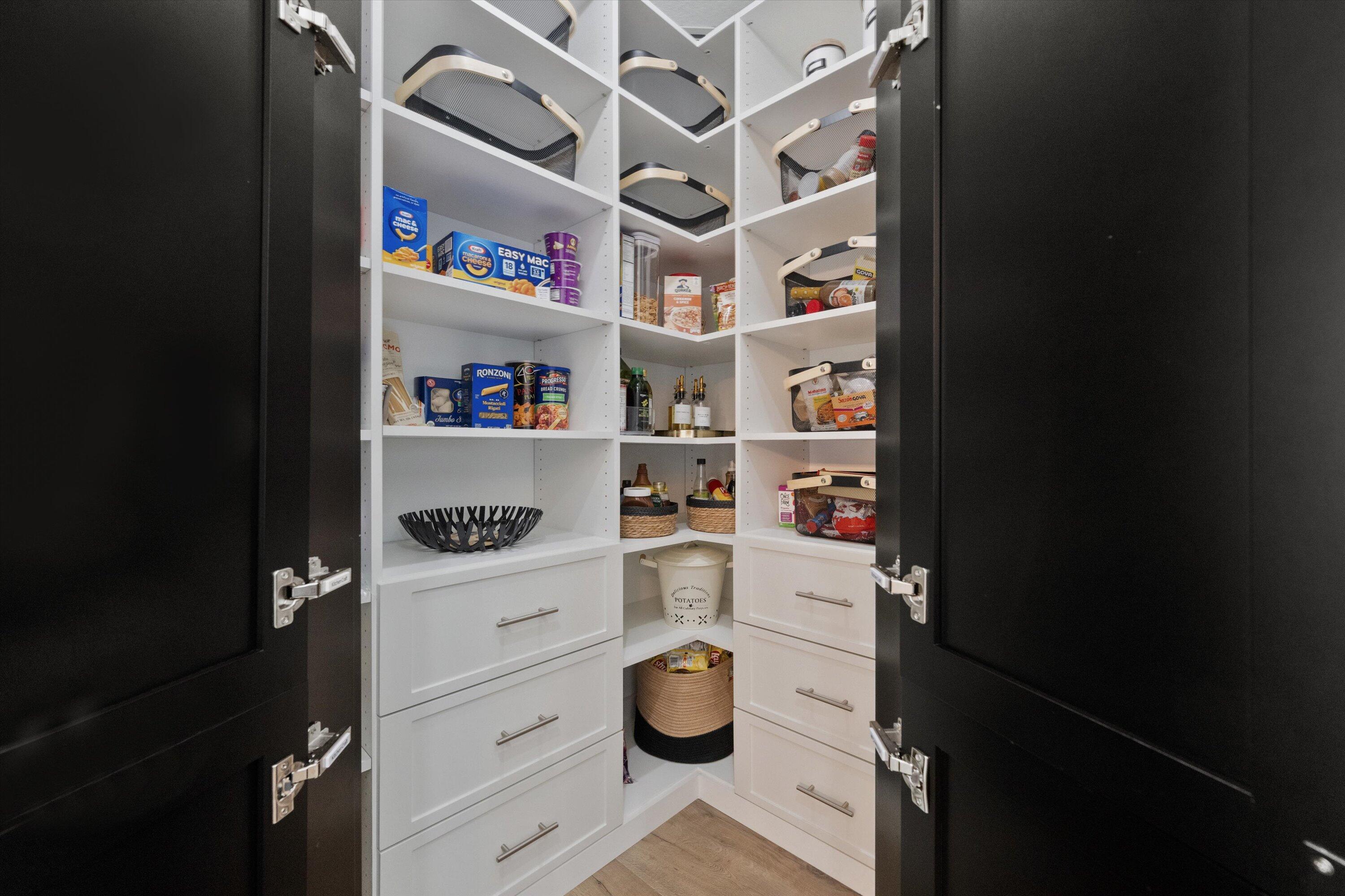 Built-in Shelves, Entry Lvl Lvng Area, Foyer, French Door, Cook Island, Laundry Tub, Pantry, Split Bedroom, Volume Ceiling, Walk-in Closet