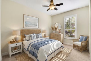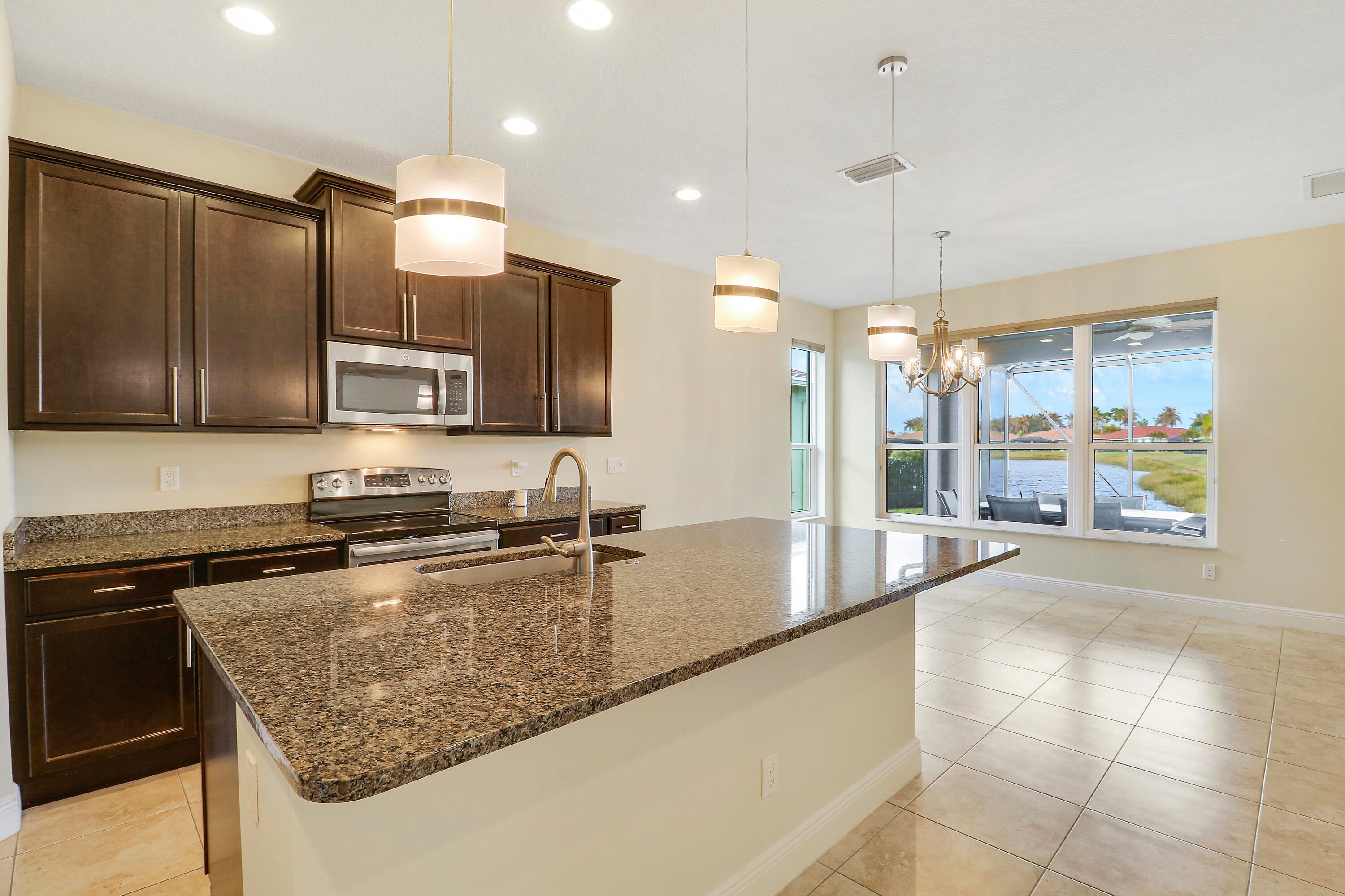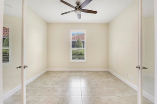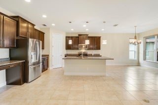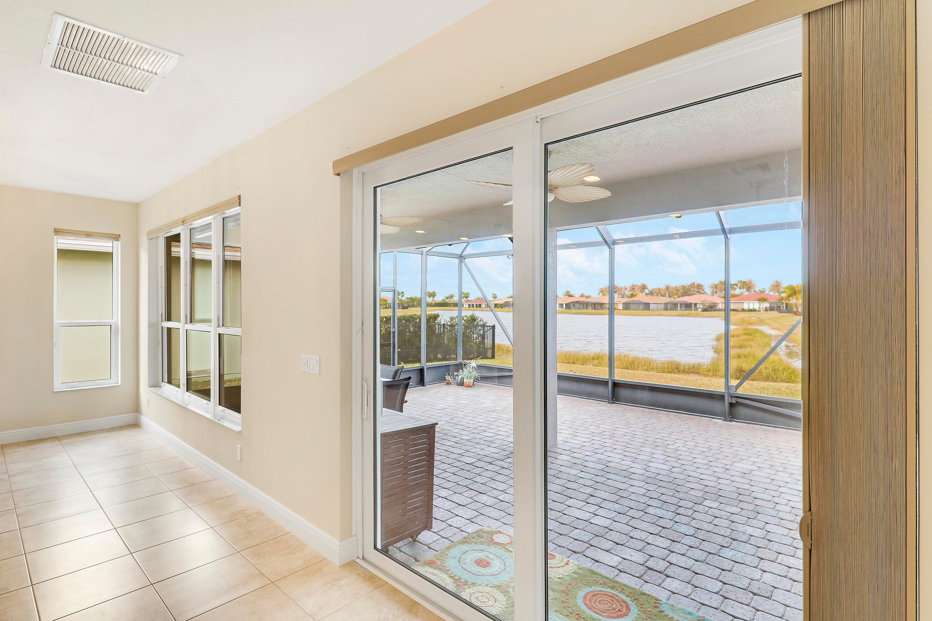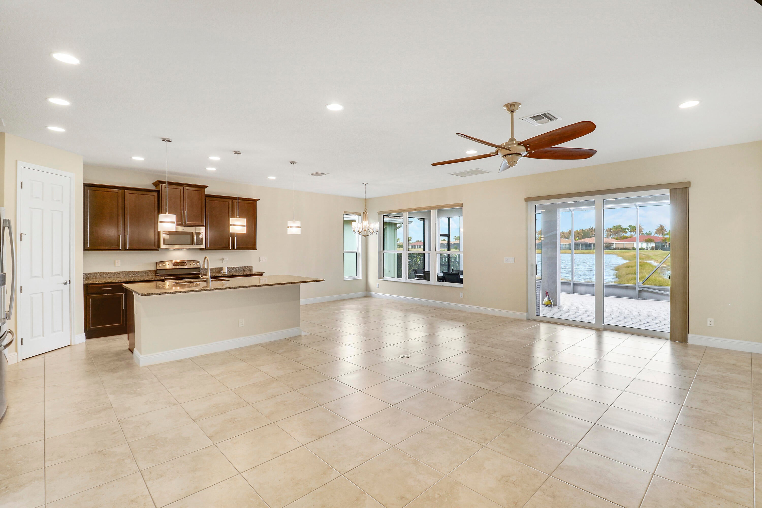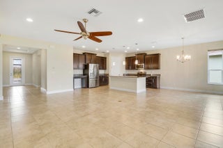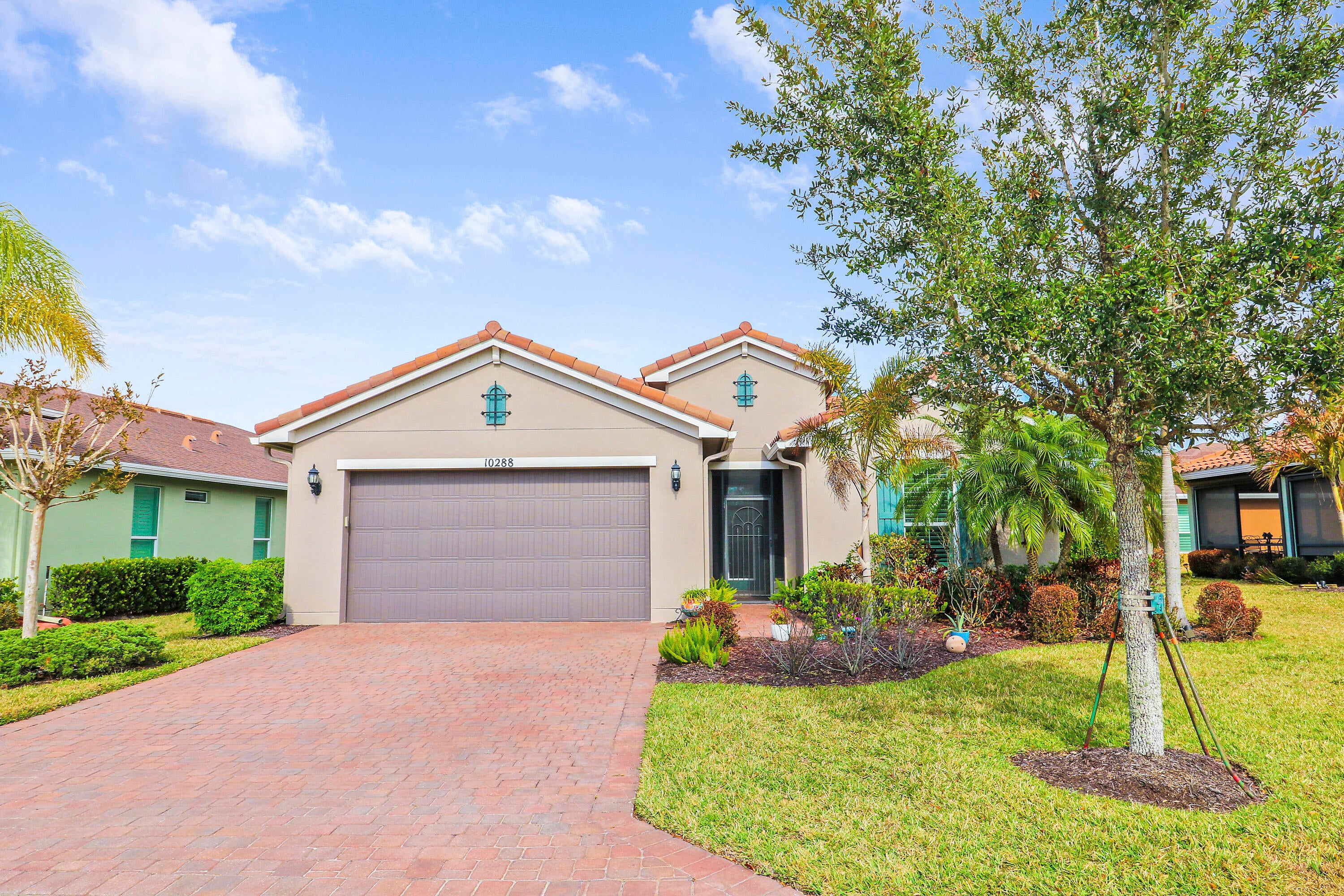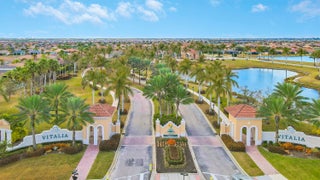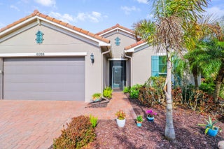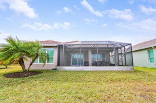 Wake up to gorgeous lake views in this 2BR+Den/2BA/2CG Jensen floor plan located in the 55+ community of Vitalia at Tradition! This move-in ready home features a screened entry, decorative impact glass front door, impact glass windows & doors, open living area, extended screened lanai, barrel tile roof, large closets, custom window treatments t/o and more! The open kitchen features a plethora of 42'' wood cabinetry, granite counters, SS appliances, breakfast bar and pendant lighting. Master suite with views of the lake has multiple closets, dressing area and ensuite bathroom with dual sinks and tiled shower. Guest bedroom located adjacent to the hall bathroom. The den has double glass doors and is the perfect place for a home office, craft space or additional TV room.Florida living comes to life with the screened and partially covered oversized lanai, utilizing 'tiny mesh' extra tight screening while providing a spacious outdoor area to dine, lounge and relax. The screened entry allows for a beautiful breeze, all while enjoying the views and birds by the lake. A 4-foot garage extension with upgraded epoxy-coated flooring includes wall-mounted shelving design for heavy weight capacity. HOA dues include basic cable, internet, alarm monitoring, security, lawn care, common area maintenance and access to the community amenities. Vitalia is a resort style 55+ community with plentiful amenities including two beautiful pools, clubhouse, pickleball & tennis courts, putting green, comprehensive fitness center complete with a wide array of classes and trained staff, library, social clubs and more. Located just a short bike ride from charming Tradition town square with shopping, dining and events. Conveniently located to interstates, hospitals, beaches and airports. Wonderful opportunity to own a slice of paradise. Call today!