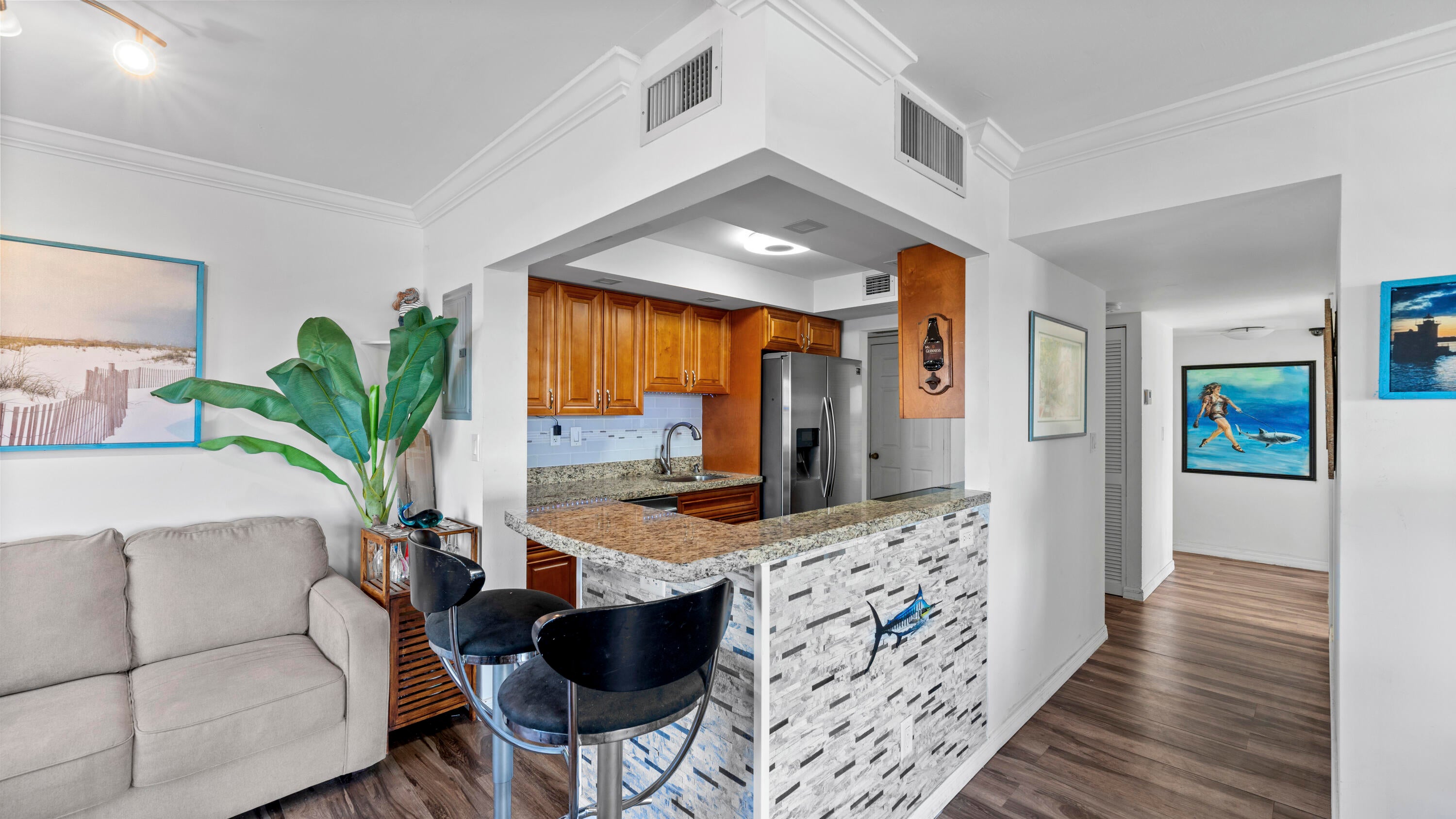 Welcome to 801 S Federal Highway #409, a beautifully updated and furnished 2-bedroom, 2-bathroom condo in the heart of Pompano Beach. This spacious unit offers an open living area filled with natural light and a modern kitchen with updated appliances and ample counter space. Enjoy your private balcony - perfect for relaxing while taking in the peaceful surroundings - and soak in the breathtaking waterfront views of the Intracoastal. Located just minutes from Pompano Beach's pristine shoreline, this condo provides easy access to the beach and local waterfront activities. The prime location on South Federal Highway offers close proximity to dining, shopping, and entertainment, with major roads for easy commuting.The building includes a swimming pool, fitness center, and secure access for added convenience and peace of mind. Available for rent from May 1st, 2025, through December 31st, 2025, this unit includes assigned parking and only requires you to bring your clothes and toothbrush, making it perfect for an extended getaway or short-term residence. Reach out today to schedule a private showing!