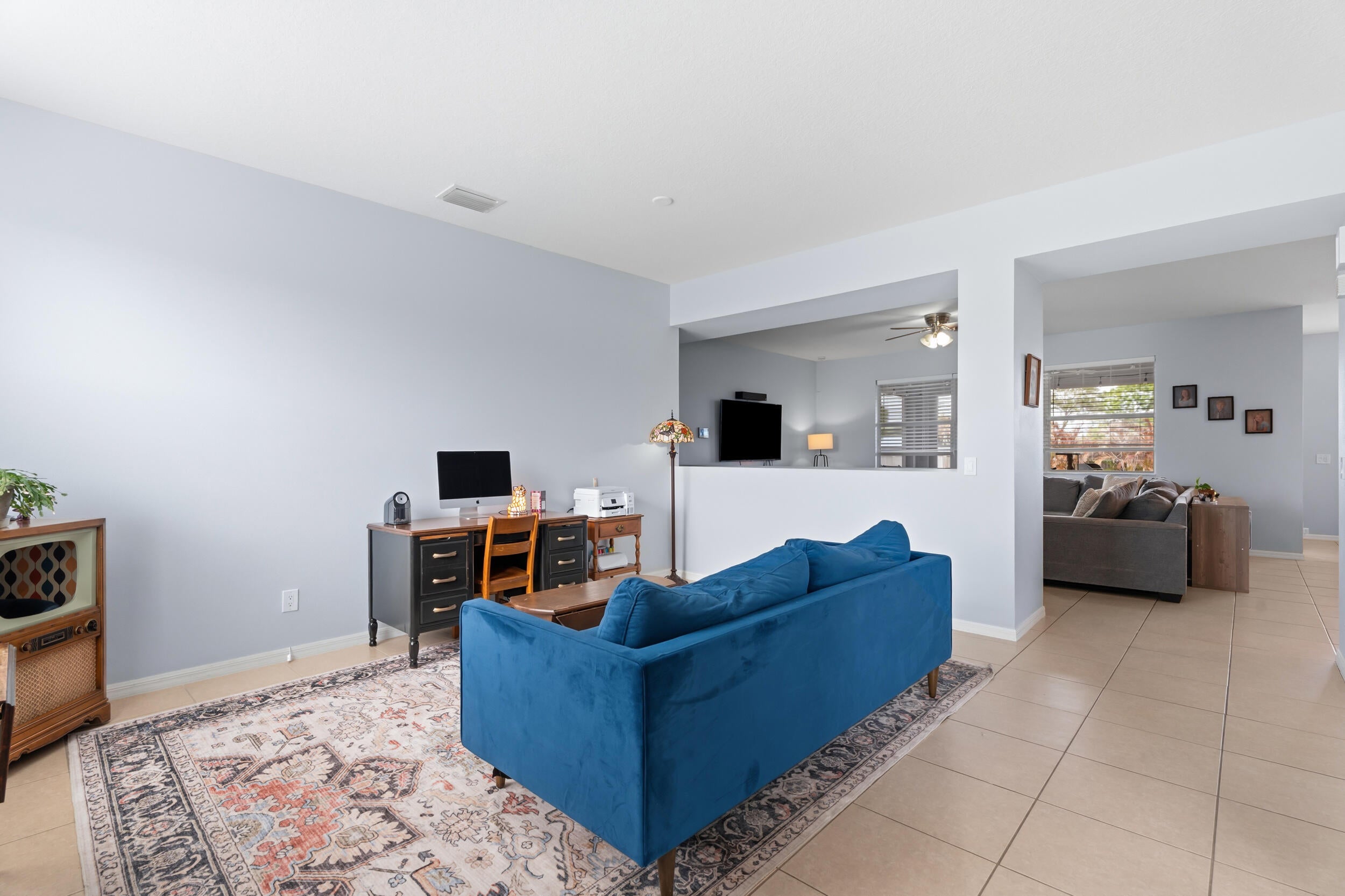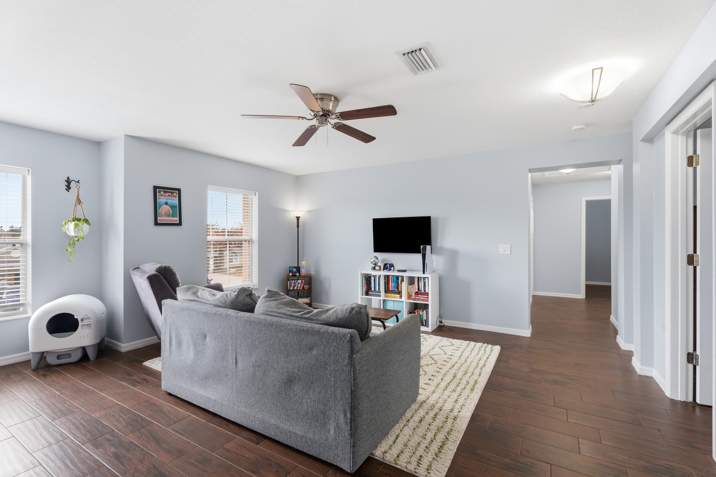 Welcome to this spacious 2-story home located in the desirable Windy Pines community in the highly sought-after Torino area. Offering 3,291 sq ft of thoughtfully designed living space, this 5 bedroom plus den residence with 3 full bathrooms provides exceptional flexibility and room to grow.Step inside to a welcoming sitting area that flows into a generously sized family room and upgraded kitchen. The first floor also includes a private ensuite bedroom with a full bath and a separate den, creating versatile options for guests, home office needs, or extended living arrangements.The open concept kitchen features upgraded cabinetry with crown molding, granite countertops, stainless steel appliances, a pantry, and a center island ideal for gathering...Tile flooring runs throughout the main level, while new wood plank tile enhances the upstairs living areas. Upstairs, a spacious loft provides additional living space perfect for a media room or secondary lounge. The expansive primary suite offers room for a sitting area, tray ceilings, a large walk-in closet, and a spacious primary bathroom. Three additional bedrooms and a generously sized upstairs laundry room provide comfort, convenience, and functionality for everyday living. Enjoy Florida living year-round in the screened lanai overlooking a large fenced backyard with no rear neighbors, offering privacy and room to enjoy outdoor activities. Conveniently located near I-95, St. Lucie West shopping, restaurants, and Clover Park, home of the St. Lucie Mets, this home combines space, versatility, and prime location in one of Port Saint Lucie's most desirable areas.
