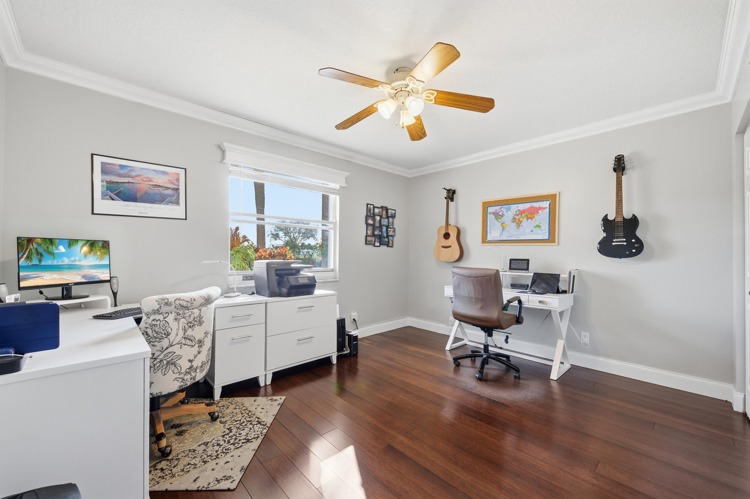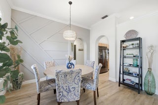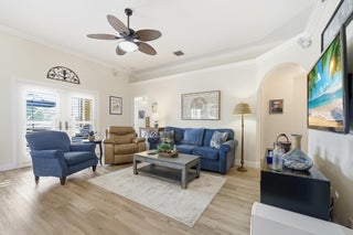 Welcome home to this beautifully updated 4-bedroom, 2-bathroom, 2-car garage waterfront pool home offering the perfect blend of modern upgrades and relaxed Florida living all within an A-rated school district.From the moment you step inside, you'll appreciate the thoughtful improvements throughout. Wood-look luxury vinyl flooring runs through the main living areas, complemented by updated trim work, plantation shutters, impact windows, and stylish upgraded fixtures and lighting. The home has been tastefully refreshed with an updated kitchen and bathrooms designed for both comfort and function.The kitchen is a true centerpiece, featuring stunning quartzite countertops with ample prep space and bar-top seating, a classic subway tile backsplash, solid wood shaker cabinetry, newerappliances, a dual sink with updated hardware and disposal, and a dedicated pantry. Best of all, it offers beautiful views of your private pool and the tranquil waters beyond, making it ideal for entertaining or simply enjoying your morning coffee. The generous primary suite is a true retreat, featuring wood-look flooring, updated trim and fixtures, plantation shutters, and plenty of natural light. The ensuite bath offers a walk-in closet with built-ins, a solid wood vanity with granite countertops, dual sinks, updated mirrors and lighting, a fully tiled walk-in shower with a frameless glass enclosure, and a Roman Jacuzzi soaking tub for ultimate relaxation. All three secondary bedrooms are generously sized, two with tile flooring and one with wood-look laminate, each offering ample closet space and natural light. The secondary bathroom mirrors the primary's quality finishes, featuring granite countertops, a solid wood vanity, updated fixtures, and a fully tiled shower/tub combination with upgraded hardware. At the front of the home, the formal living and dining areas flow seamlessly together and are highlighted by a charming wood accent wall, plantation shutters, elegant trim work, and an abundance of natural light streaming through impact glass. Just off the kitchen, the spacious family room is perfect for hosting gatherings, complete with impact French doors leading outside and a cozy breakfast nook overlooking the water. Step outside to a private backyard retreat with a screened enclosure, covered patio, and a freeform pool with a waterfall feature, perfectly positioned along serene water views. The expansive canal system stretches throughout the surrounding areas, offering a peaceful setting and excellent fishing opportunities right from your backyard. Whether casting a line, entertaining guests, or simply unwinding at the end of the day, this outdoor space embodies the laid-back South Florida lifestyle. Located just minutes from Commons Park with its walking trails, lakes, sports fields, and community events, this home offers easy access to outdoor recreation and neighborhood gatherings. You're within walking distance of Cypress Trails Elementary School and close to shopping centers, grocery stores, dining options, and everyday conveniences, all while enjoying the quiet charm and desirable setting of Royal Palm Beach.
