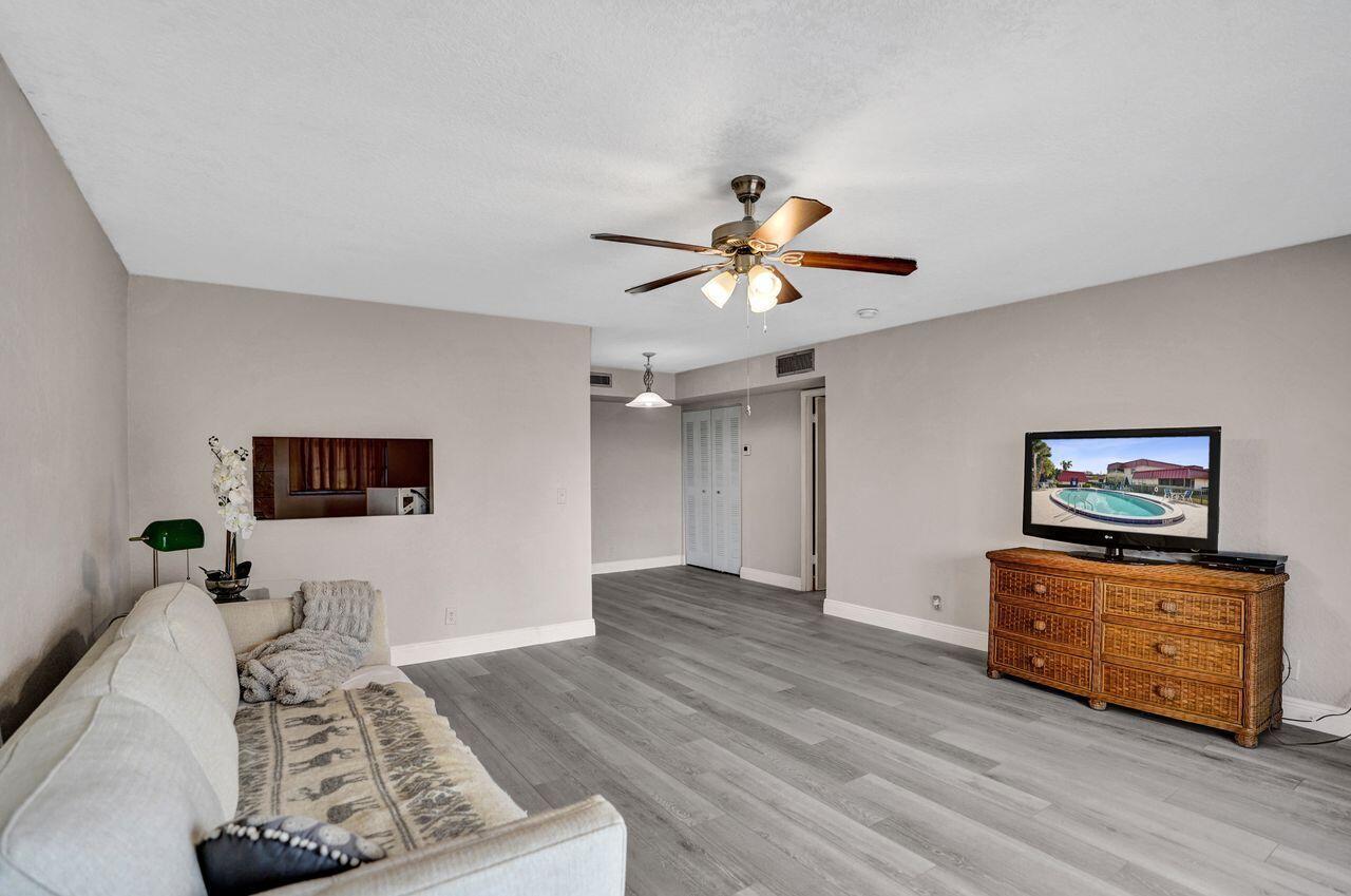 Beautifully updated ground-floor condo with no stairs and peaceful waterfront views. This move-in-ready home features brand-new flooring, fresh paint, no carpet, an updated bathroom and a new refrigerator and range. 2024 roof. Enjoy morning coffee or evening breezes on your private screened and enclosed patio, creating usable year-round indoor/outdoor living space. Perfectly located directly across from Commons Park, offering walking trails, green markets, events, golf and wide-open green space just steps from your door. The community provides a clubhouse, fitness center, and four pools, creating a truly active Florida lifestyle. Close to everything Costco, Wellington Green Mall, restaurants, shopping, parks, PBI Airport, and beautiful South Florida beaches.