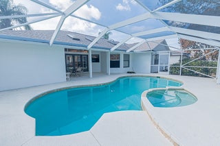 Beautiful 3BR/2BA CBS pool home with 2-car garage on a desirable corner lot! Recently painted inside and out with a brand-new 2025 roof and new 2025 water heater for added peace of mind. Home has open layout filled with natural light from multiple skylights. Tile flooring runs throughout the entire home. The kitchen features stainless steel appliances and extra cabinetry for added storage. French doors lead to the covered lanai and screened-in pool--perfect for indoor/outdoor living. Spacious primary suite offers a walk-in closet, Roman tub, and separate shower. Renovated guest bath adds modern appeal. Enjoy a fenced yard with an oversized shed with electric - perfect for hobbies or extra storage. Prime location near St. Lucie West & St. James! -- schedule your showing today!