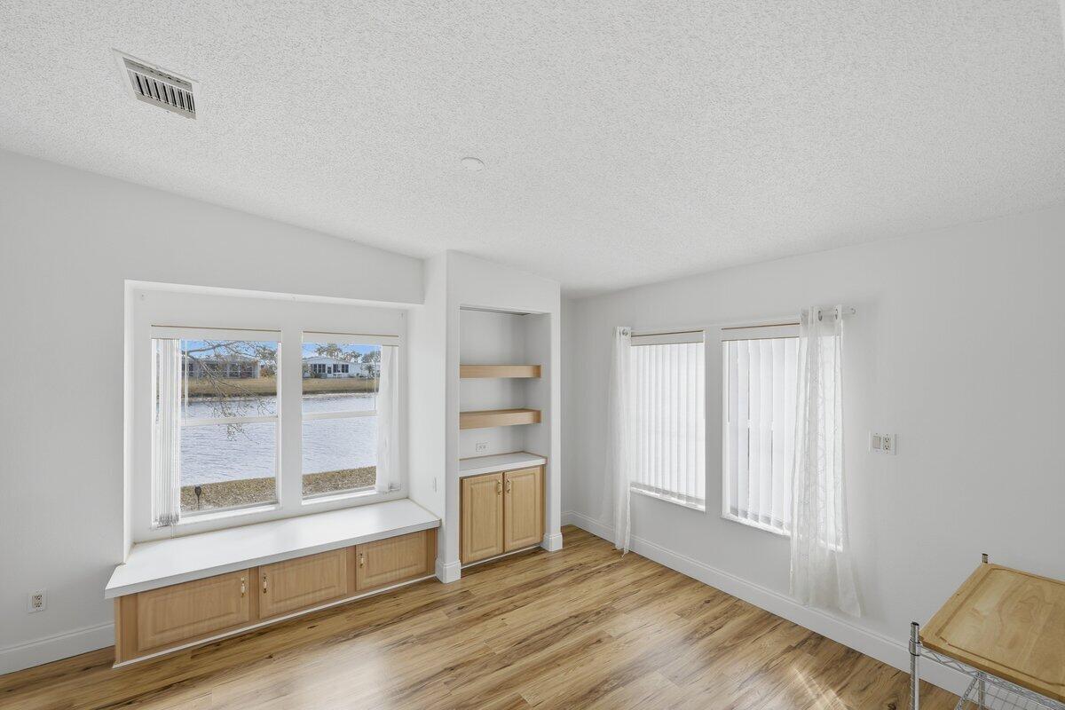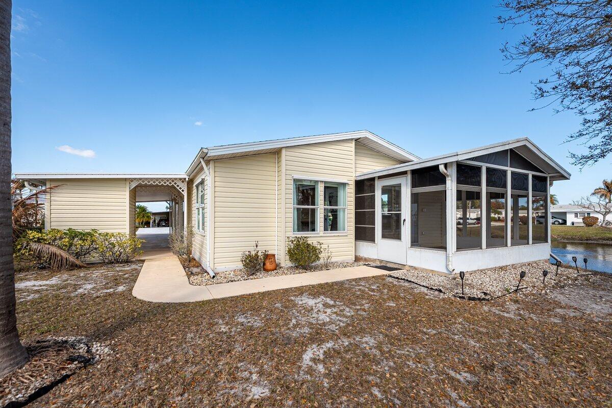 PANORAMIC WATERFRONT! Fantastic Location! Enjoy breathtaking sunset water views from your own Florida home! This 2-bed, 2-bath home features all new interior paint, new carpet, 2018-Roof, 2018-AC, 2019-Hot Water Heater, New Hickory Laminate Flooring on the Lanai and in the Family Room and Hurricane Shutters for storm protection. Great for entertaining. Storage Room for pool floats and tools. Don't miss your opportunity to own a slice of Florida in the highly desired Savanna Club. Experience the best of 55+ living with resort style amenities featuring staffed clubhouses, fitness center, 3 swimming pools, tennis, pickle ball, 10,000sf theater, 18 hole golf course, restaurant, etc. Take time to relax or stay busy with the community social calendar. Call today for your private tour!