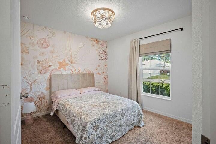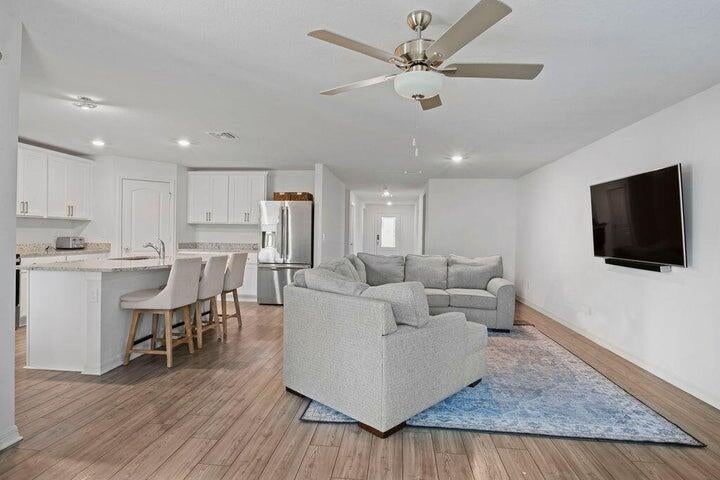 Located within the highly sought-after area of Port St. Lucie, the Capri is more than move-in -ready. This one-story home features an open-concept floor plan, 5 bedrooms and 3 full baths complete with thousands of dollars in upgrades included. Features such as energy-efficient Whirlpool appliances, sprawling granite countertops in the kitchen, beautiful wood cabinets, large island and pantry, brushed nickel hardware and an attached two-car garage. Yard is completely fenced with large concrete patio, screened area and play set. Plank tile through living areas; carpet in bedrooms. Master has large walk-in closet, dual sinks and shower.