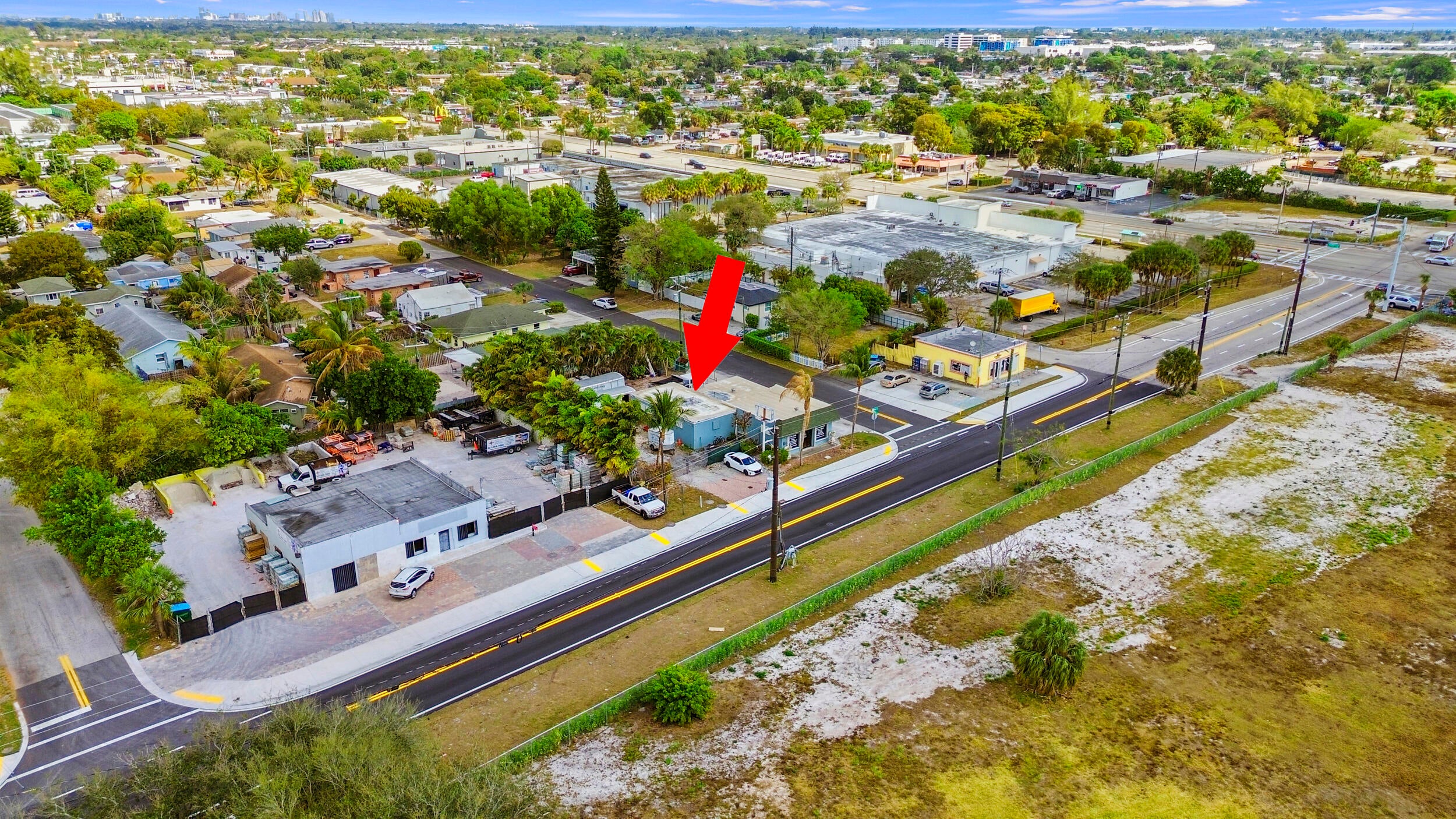 1,250 sq ft main building with two half bathrooms and 750 sq ft attached bay that opens to secure and fully fenced parking lot, yard or storage area. Additional street side parking. 2nd Ave was recently widened and improved with new sewer / drainage systems. Currently used by owner for landscape company office / storage. Formally their retail garden center and a hurricane shutter show prior to that. Many possibilities as the current owner was in talks with the city to rezone for restaurant use or can building can be wiped for residential / multi family use.