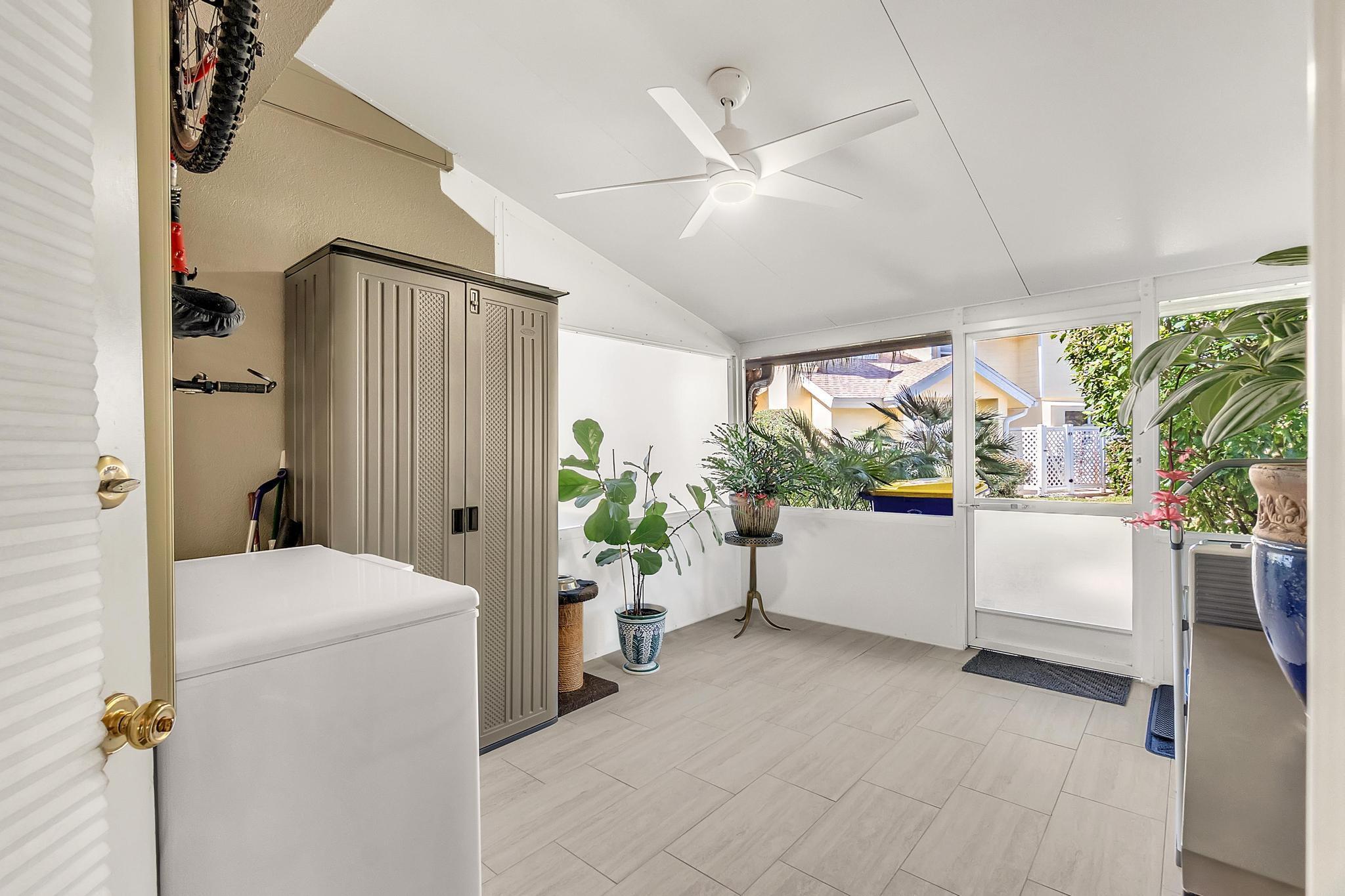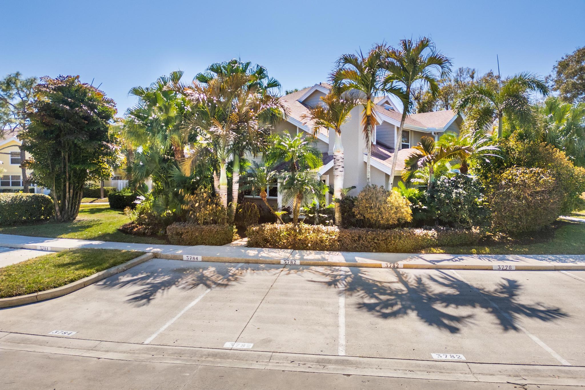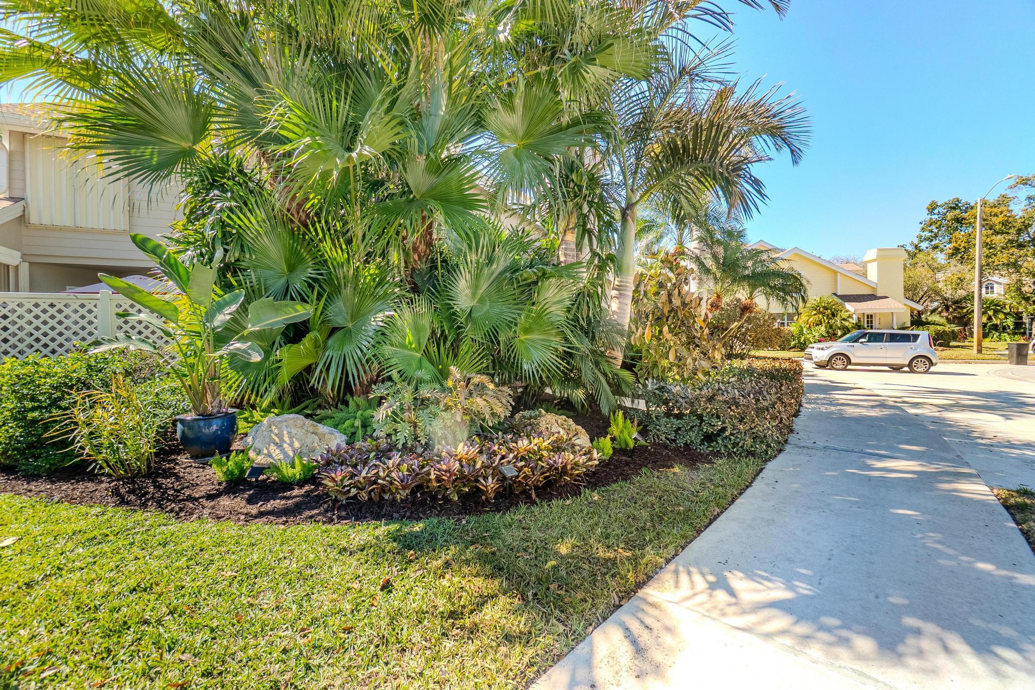 Located in the desirable Sunset Trace community, this beautifully maintained 3-bedroom 2 bath townhouse offers solid poured concrete construction and stylish updates throughout. Enjoy an updated kitchen with marble counters and hardwood cabinets, lots of storage, wine bar and stainless appliances. The vaulted ceilings, updated baths, tile flooring, and a spacious screened-in patio offer a move in ready home. A charming front porch and lush tropical landscaping complete this inviting home in a gated, amenity-rich neighborhood with pool, tennis and playground. Full size washer and dryer in unit. Close to I-95 and turnpike for commuters and ''A'' rated schools. Just a short walk to many restaurants and close to downtown Palm City! HOA includes cable, internet, lawn, building insurance and mor