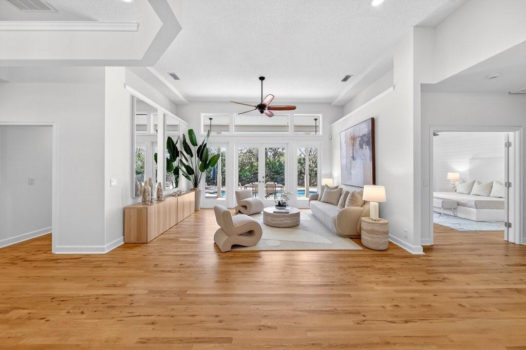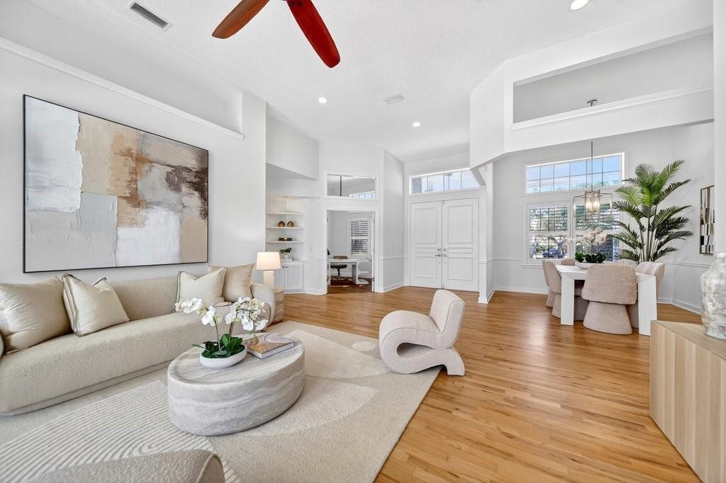 Palm City luxury on 1/2+ acre cul-de-sac in gated Windstone. 4BR + private office, 3BA/2HB crafted for elevated living w/split plan & vol ceilings that create light-filled, open interiors. Designer refresh incl. int/ext paint, refinished flooring, new BR carpet & reimagined baths w/ modern finishes. Custom closet built-ins, new int doors & metal roof reflect enduring quality & thoughtful detail. Resort-style newly resurfaced pool anchors a private backyard oasis ideal for entertaining, while the inviting front porch sets a gracious arrival. Low HOA, A-rated schools, tranquil setting & seamless commuter access complete the offering.