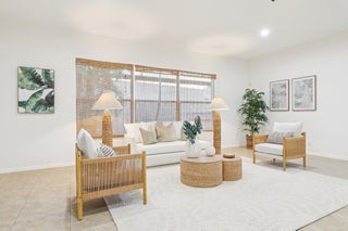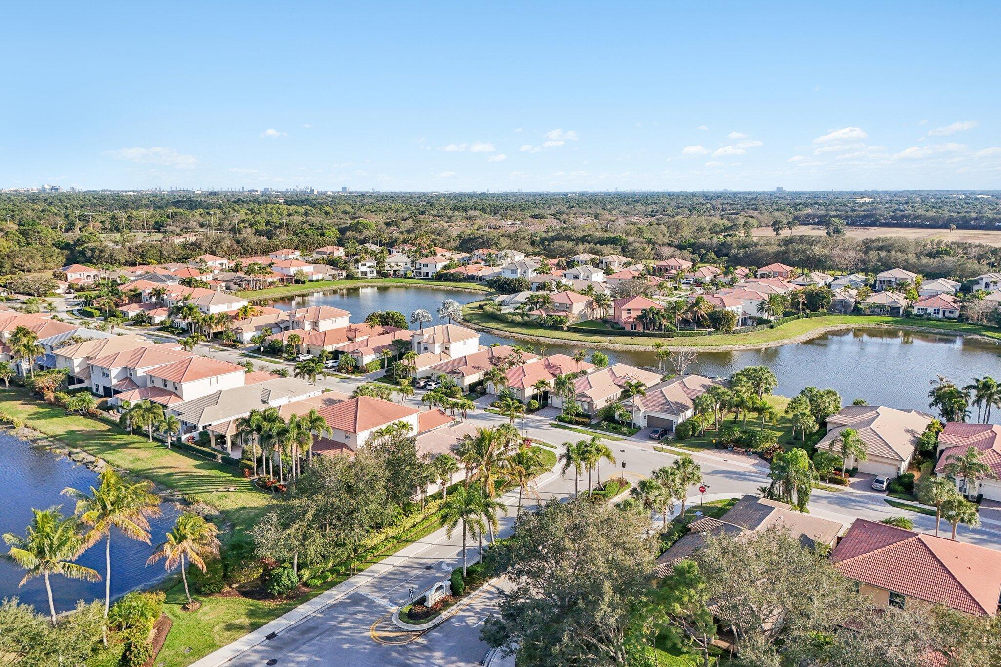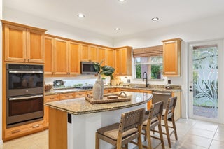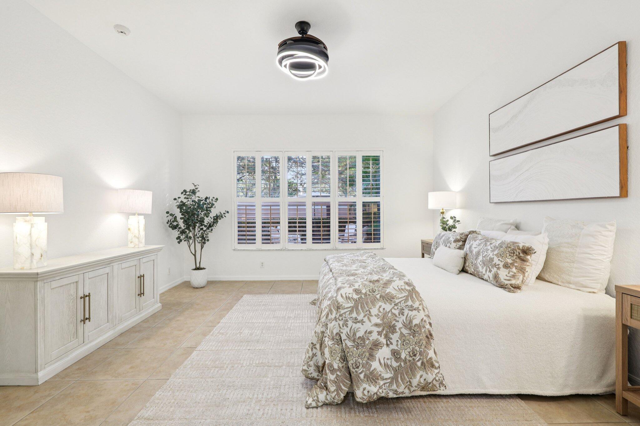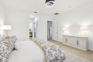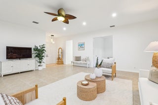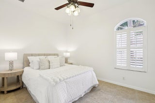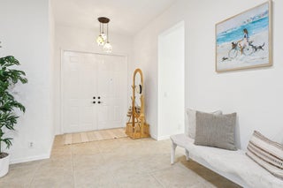 Single-story CBS Extended El Prado model with 2,440 square feet under air, offering 3 bedrooms plus a dedicated office easily converted to a 4th bedroom, and 2.5 fully remodeled baths in Mirabella at Mirasol. Positioned on a private southern-facing lot, the home opens to an extended great room that anchors the layout, with high ceilings and natural light filling the space. Tile flooring throughout (no carpeting) is complemented by fresh paint and updated LED lighting. The kitchen features granite countertops, center island, double ovens, upgraded GE gas appliances, and ample cabinetry. It connects directly to the dining and living areas and overlooks the outdoor patio. Outdoor living includes a covered patio, added raised deck, natural gas hookup, and room for a future pool.The primary bedroom provides ample space along with two walk-in closets and ensuite bath with dual sinks, soaking tub, and seamless glass shower. A separate water closet is equipped with modernized Toto toilet. The split-bedroom floor plan offers a dedicated office and two generously sized secondary bedrooms with large closets. A separate laundry room includes an updated washer and dryer along with a utility sink for added convenience. Additional highlights include full accordion hurricane shutters, a tankless water heater, central vacuum system, and a two-car garage. Mirabella is a no-equity community offering a resort-style heated pool with sun deck, lighted Har-Tru tennis courts, fitness center, card room, kids' clubhouse, covered playground, and children's pool. Zoned for Marsh Pointe Elementary and minutes to shopping, dining, beaches, cultural venues, and Palm Beach International Airport.