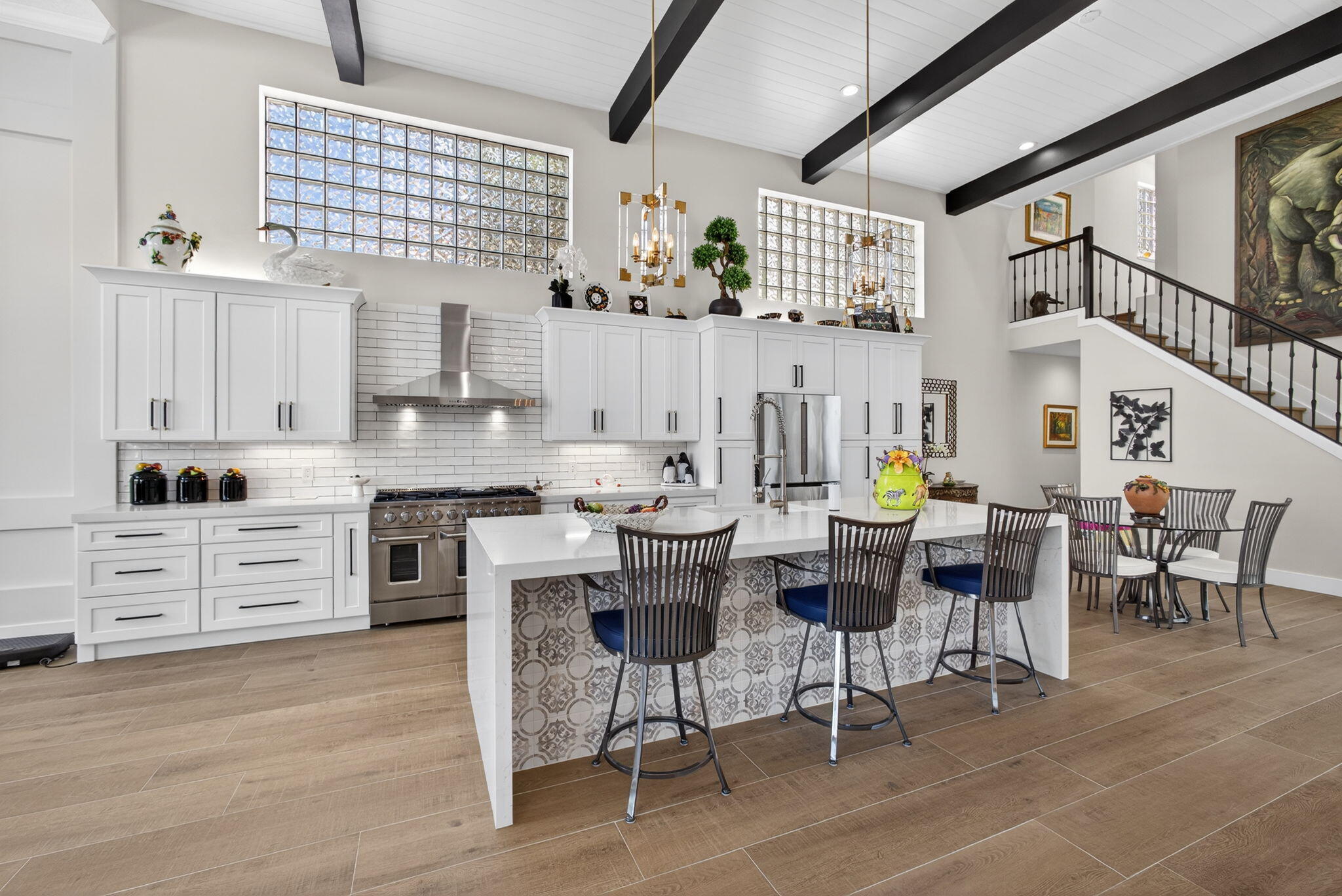 Stunning residence overlooking the 16th hole of the Champion Golf Course in the exclusive Grand Cay community at PGA National. This fully upgraded and meticulously maintained home features a private pool house with covered porch and waterfall feature. High-quality impact windows and doors are installed throughout, along with custom electric blinds and automatic awnings. Interior highlights include a Dimplex electric fireplace, custom built-in dressers and end tables, designer lighting, a beautiful custom kitchen island, and a top-of-the-line Kutch electric stove. Exceptional craftsmanship and refined finishes define this golf course property.
