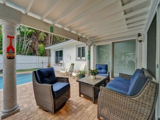 Private beach access home for sale in upscale Hillsboro Shores, Pompano Beach. This home has 3/2/1 and a pool. It the perfect blend of modern luxury and seaside charm. As you step the front door, you are greeted by an open-concept living space bathed in natural lights, courtesy of strategically placed windows that frames beautiful views of the pool. Hurricane windows and doors already in place for your peace of mind, New roof in 2023. The chef's kitchen with black stainless steel fingerprints free appliances.Waterfalls quartz countertops complement the custom made cabinetry. Porcelain floor for a nicer contemporary looking. Your private oasis backyard featuring a covered patio for dining or sunset cocktails by the salt pool (water heater) that was completely renovated in 2025.Voluntary HOA