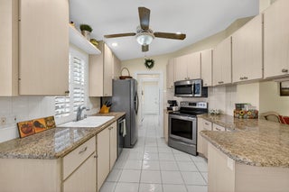 Experience the Florida lifestyle in this meticulously maintained DiVosta masterpiece. Designed for easy living, the open kitchen boasts granite countertops and stainless appliances, flowing into bright living spaces with laminate bamboo flooring, plantation shutters, and lush tropical views.Retreat to a primary suite featuring a spa-like frameless glass shower. Enjoy coffee on the screened lanai, complete with a ceiling fan, lighting, and a power awning for perfect shade. This move-in-ready gem offers ultimate peace of mind with replaced polybutylene piping, a 2025 water heater, 2017 AC, 2015 roof, and accordion hurricane shutters. Surrounded by tropical landscaping, this home perfectly balances luxury and structural integrity. It's time to make your dream a reality!
