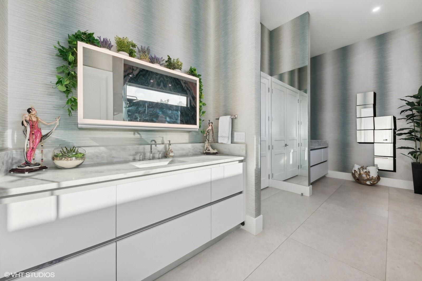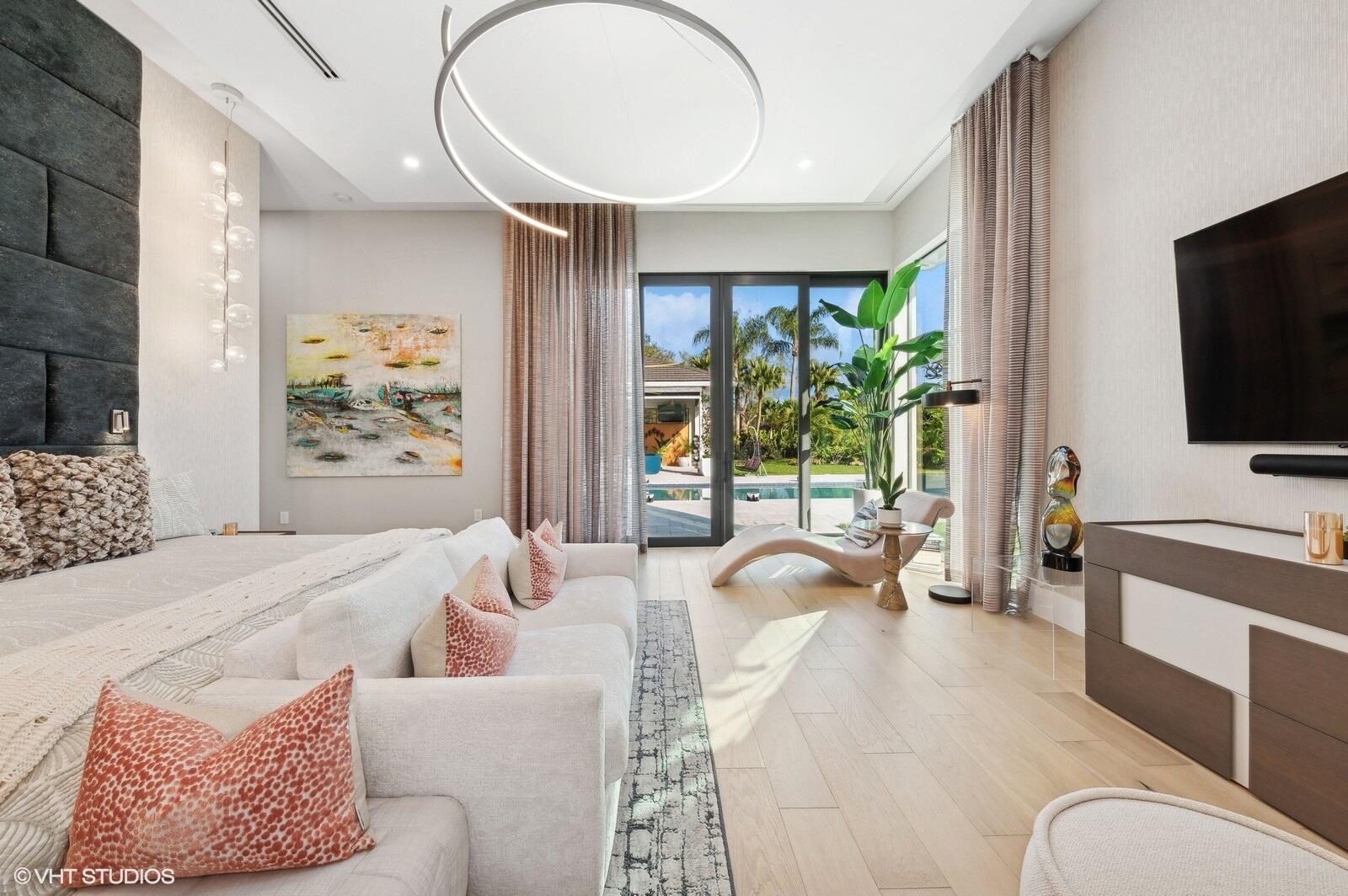 Exceptional modern one level house sitting on an over 1-acre private lot with beautifully designed landscaping. Your own private oasis just minutes from major shopping and dine out destinations. The house features a custom kitchen, spacious open living area, 6 ensuite bedrooms, office/den room, plenty of storage and a generous main bedroom situated in its own private wing of the house with its own double bathroom and custom walk-in closets. Set in a private impeccably maintained man gated community with 24-hour security on site.