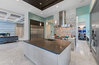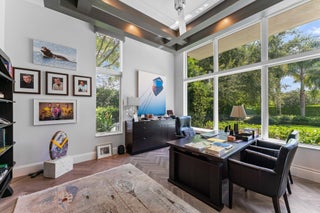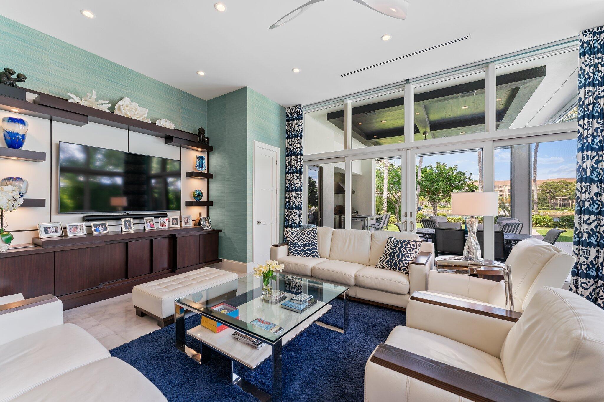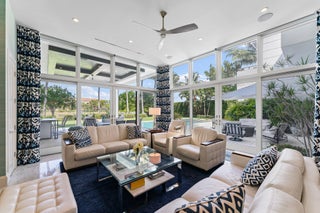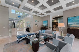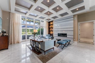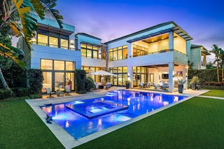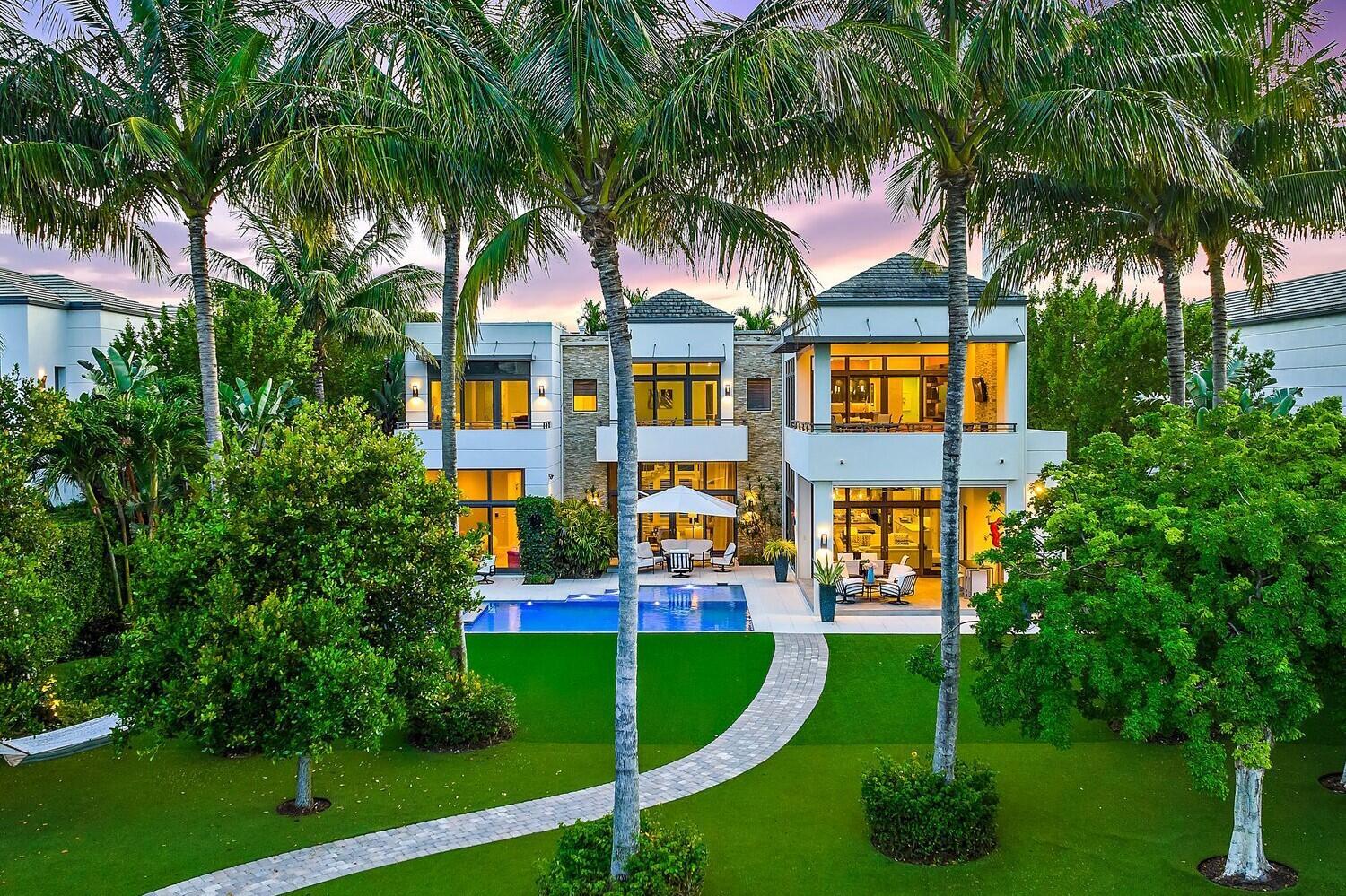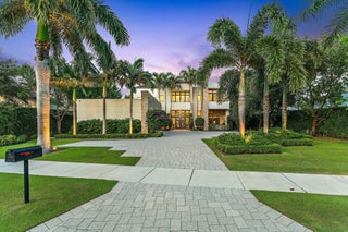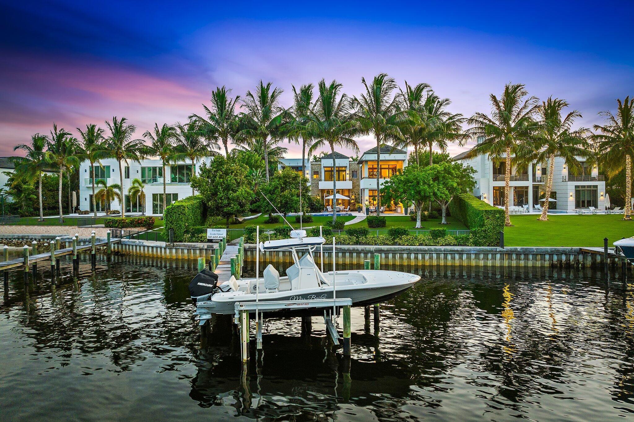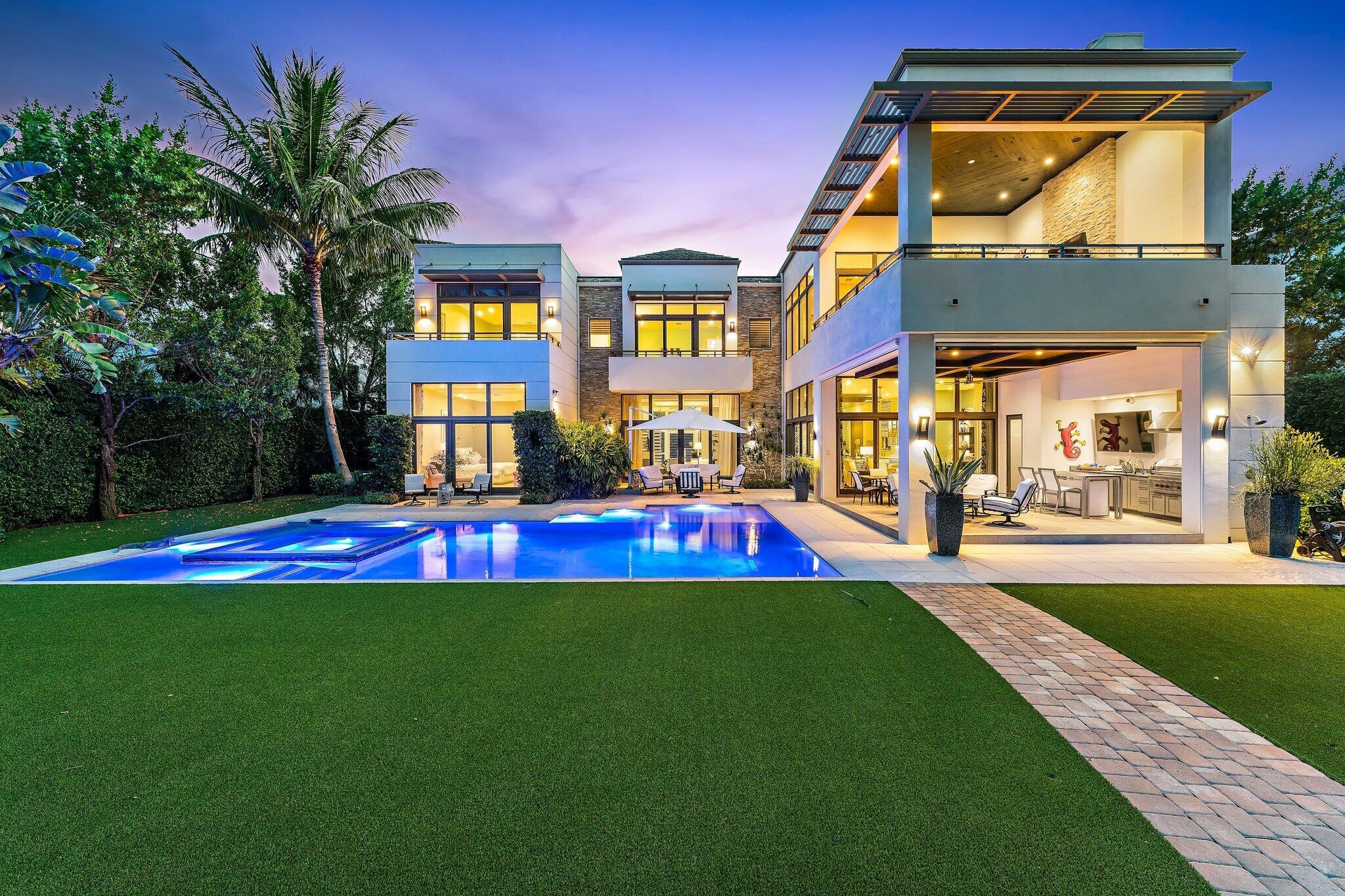 EXQUISITE Custom Waterfront Estate built in 2015 offers the finest quality construction. Built by award winning Couture homes this residence features poured concrete on both levels and premiere Anderson Impact Windows + Doors throughout. Sited on .78 Acres w/ 88' of Direct Intracoastal frontage in Harbor Place, a gated enclave of 7 custom homes. This home epitomizes elegance + comfort enhanced by modern functionality. Double height entry hall showcases a striking design palette accented by contemporary marble flooring and floor to ceiling windows. Impeccably maintained inside + out, this floor plan offers fluid design with grand scale rooms and water views from all main living areas. Design elements include marble fireplace, coffered ceilings, glass+marble staircase and private elevator.Formal living room is graced by a coffered ceiling, gas fireplace +custom millwork . The Chef's kitchen features Wolf + Sub Zero appliances with double ovens + dishwashers. Smart home upgrades include Control 4, Lutron lighting system and remote control A/C. There is a full home generator. Downstairs Primary Bedroom offers dual closets, morning bar, luxe bath and opens to a scenic lanai - private and serene. There is a second Owners Suite upstairs offering glamorous space and a zen spa bath. Bedrooms 3 to 5 are all grand in size with ensuite baths + dual closets. A grand Club room with lanai completes the upstairs. Thoughtfully designed to blend indoor + outdoor living, this home offers seamless transition from indoors to a manicured lawn overlooking the Intracoastal. Outdoor summer kitchen and pool with Spa and sun shelf are perfect for entertaining. Boating enthusiasts will love the direct Intracoastal location with easy access to the BOTH Jupiter + Palm Beach Inlets and turquoise Ocean! Dock w/ 16,000 lift, fits up to a 35' boat. Harbor Place residents enjoy a unique paradise w/ beautifully landscaped and maintained grounds and no homes across the street, only scenic greenery. Prime PBG location is minutes from best beaches, world class shopping, dining, educational and cultural venues. A truly fabulous place to live and enjoy!