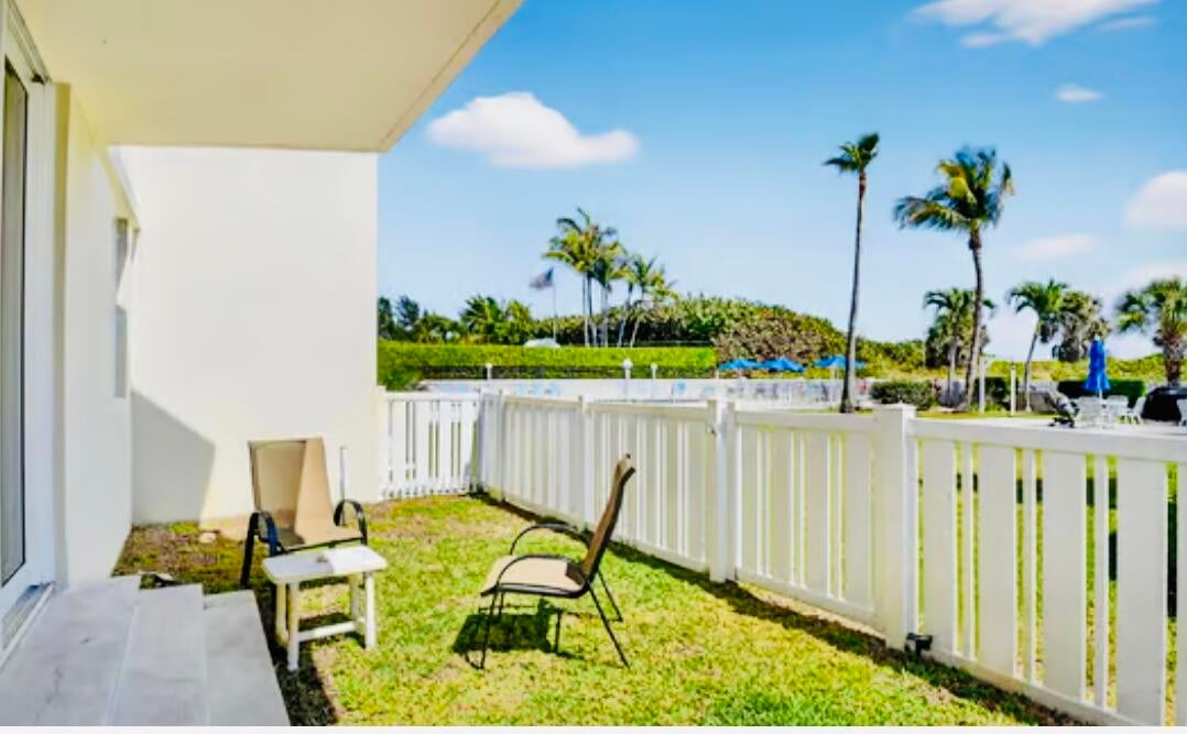 Welcome to a beautifully updated 2-bedroom, 2-bath residence at Mayan Towers South in the charming coastal town of Palm Beach Shores. This light-filled ground level condo features a spacious split-bedroom layout, open living and dining areas, and a private fenced patio with refreshing Ocean Breezes. Kitchen with Marble Countertops, Stainless Steal Farmhouse Sink and Appliances. Real Wood Floors, Crown Molding, Enjoy direct beach access, a heated oceanfront pool, billiards, fitness room, sauna, and secure building entry, covered parking. Just moments from waterfront dining, marinas, shopping, and Palm Beach International Airport, Worth Ave, Downtown West Palm Beach, Peanut Island, Water Sports, this property is ideal as a full-time residence, seasonal getaway, or investment opportunity.