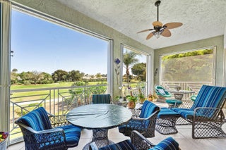 Welcome to this well maintained 2nd floor 2500 sq ft condo in the highly desirable Palms enclave, a short distance to the club. Complete with private elevator and 2 car garage, this home provides for easy living in an ideal setting. The exceptionally spacious great room floor plan, with a sunny bright eat in kitchen makes for enjoyable entertaining. 3 large bedrooms including a large primary suite offers plenty of room for family visitors. Kick back and relax on the expansive screened balcony overlooking the 5th hole of the East golf course, offering a golf and water view. Racquets membership available which may be upgraded at closing to sports membership. Current owner has the formal dining room being used as a fully outfitted office. This lovely home is waiting for your personal touch